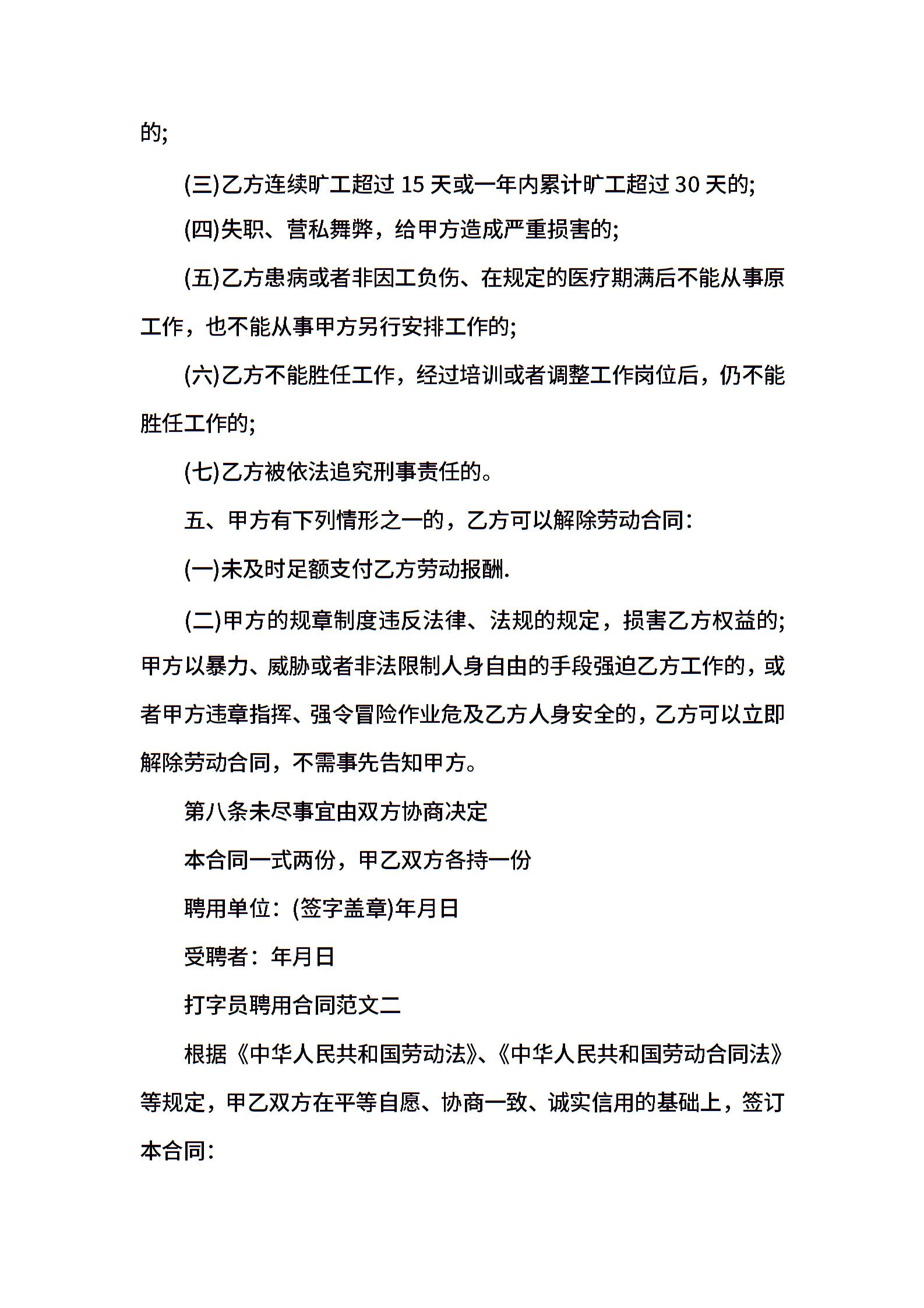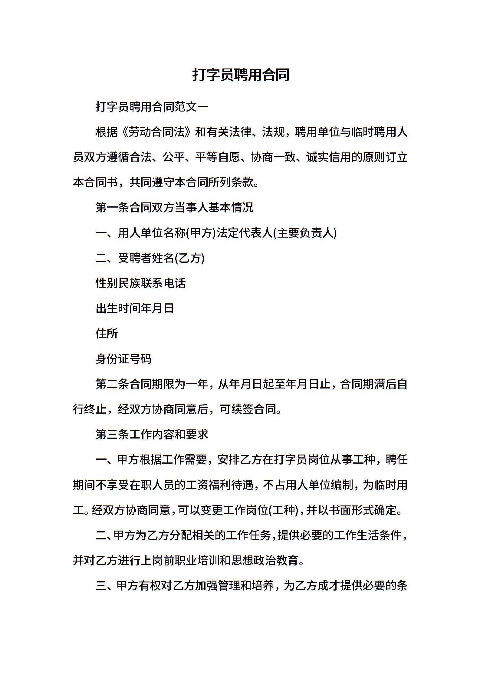 打字员聘用合同
