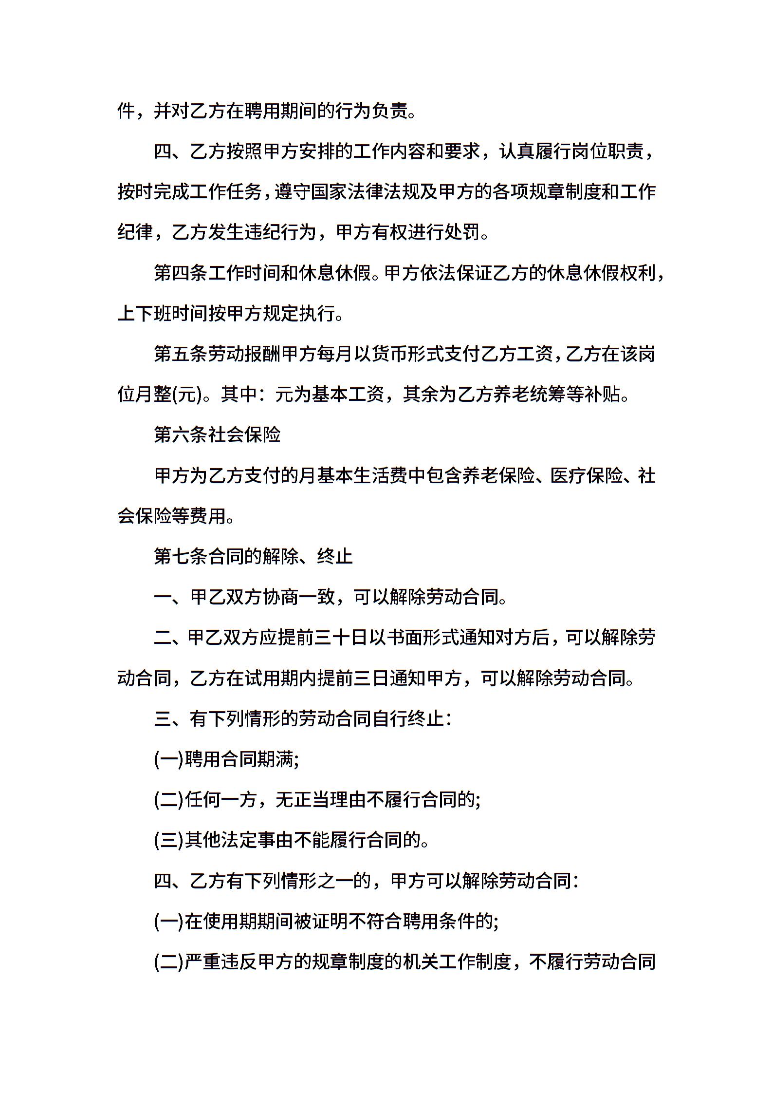 • 分类 聘用合同