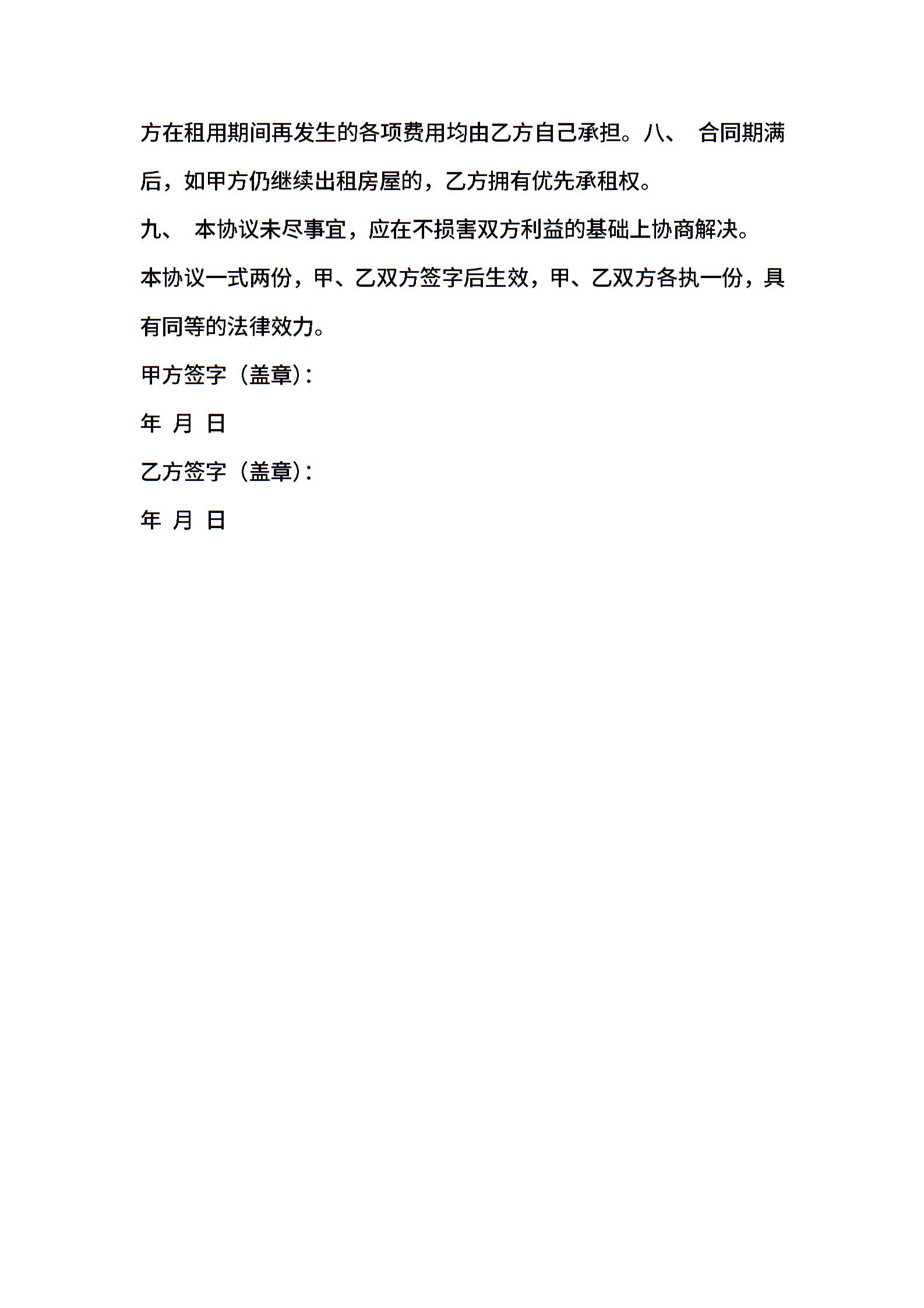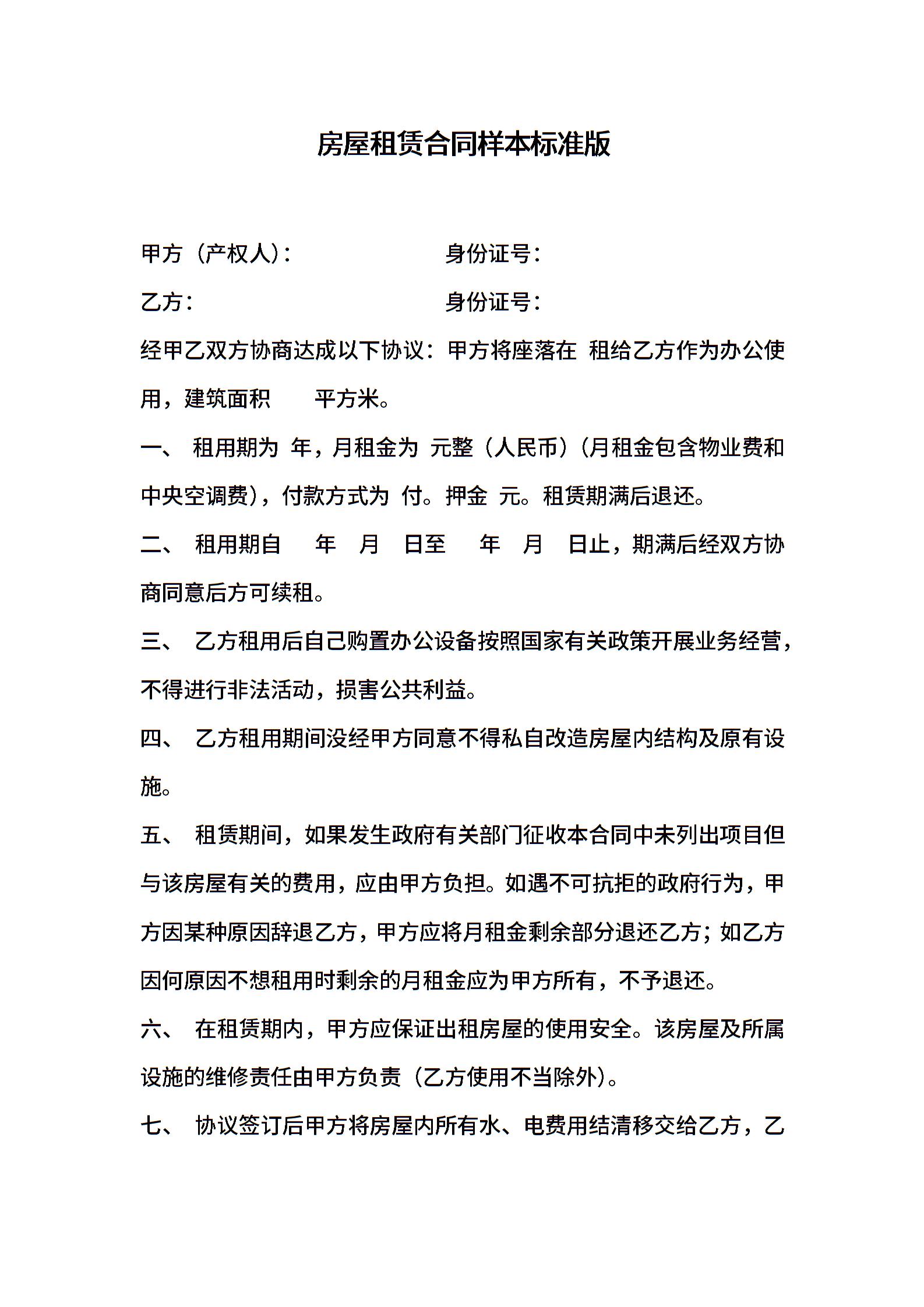 房屋租赁合同样本标准版
