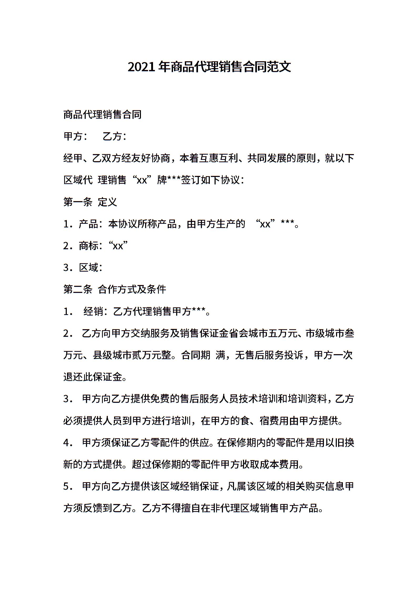 2021年商品代理销售合同范文 (2)