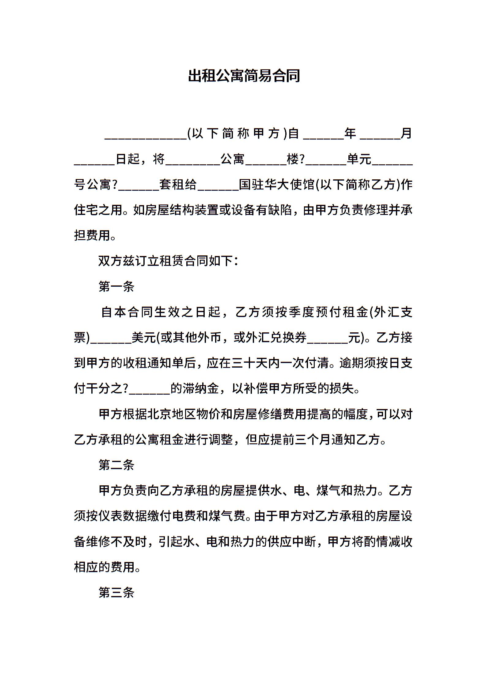 出租公寓简易合同