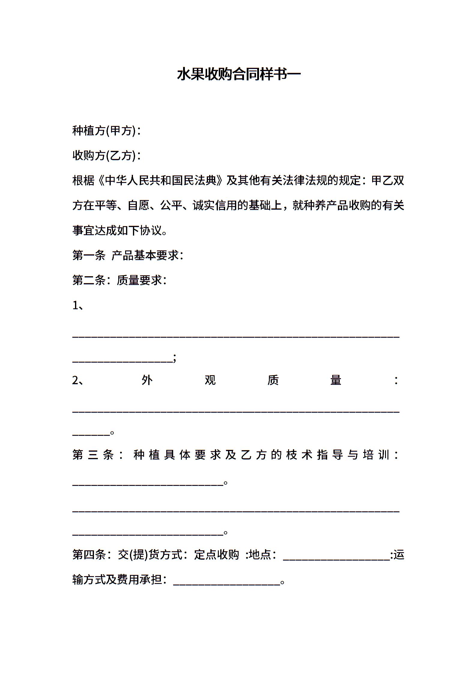 水果收购合同样书一
