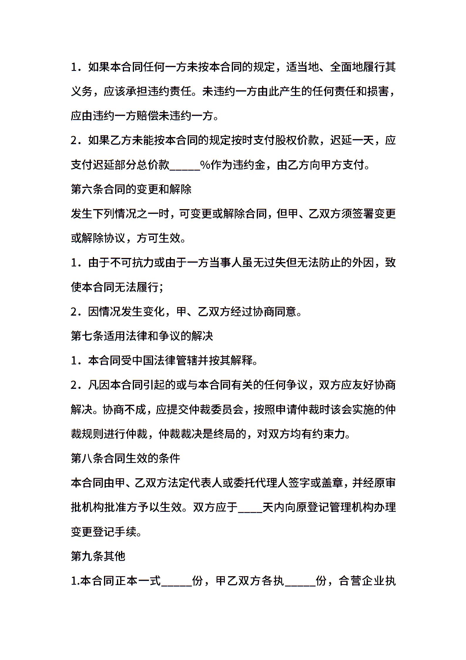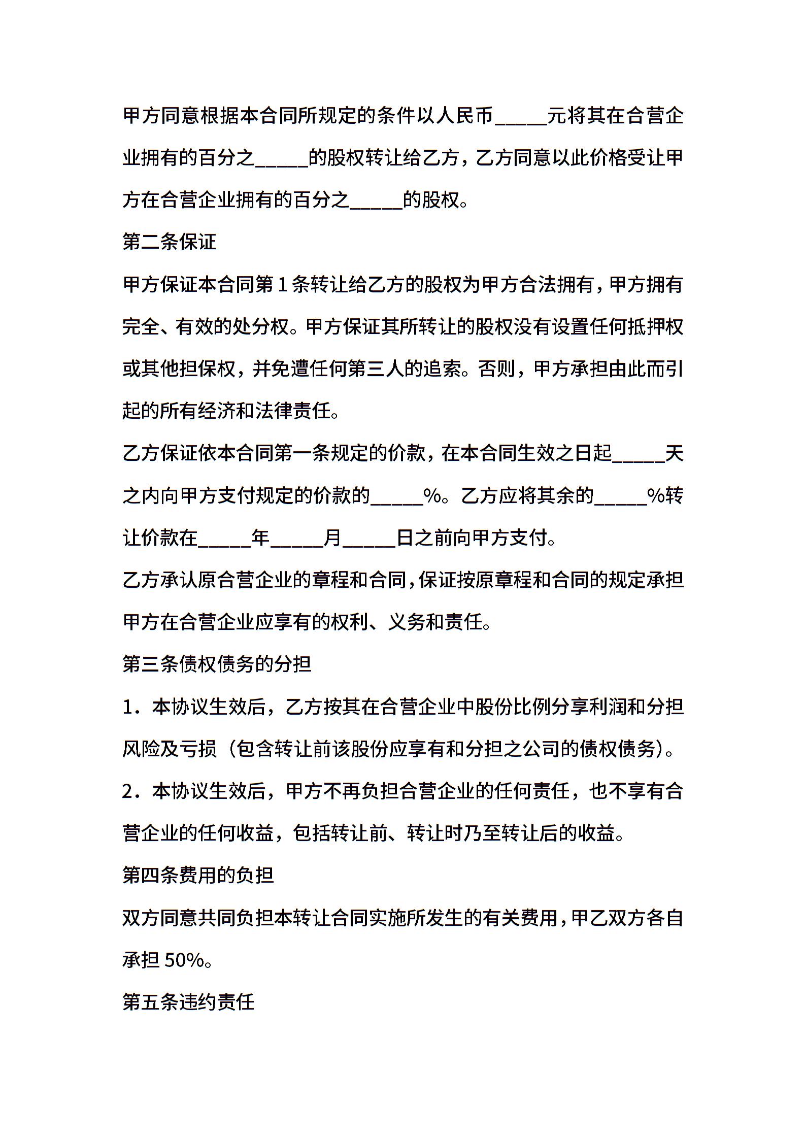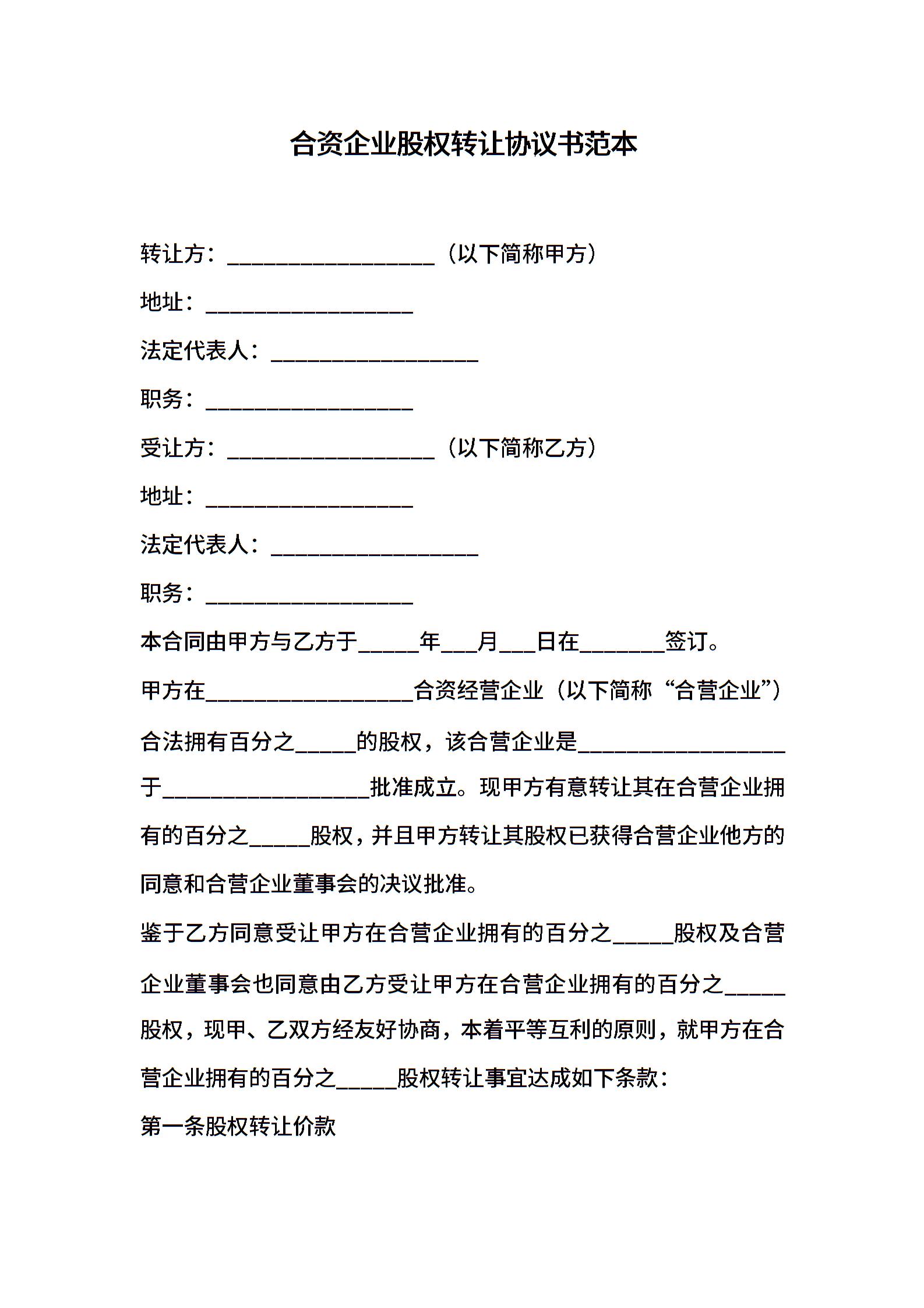 合资企业股权转让协议书范本