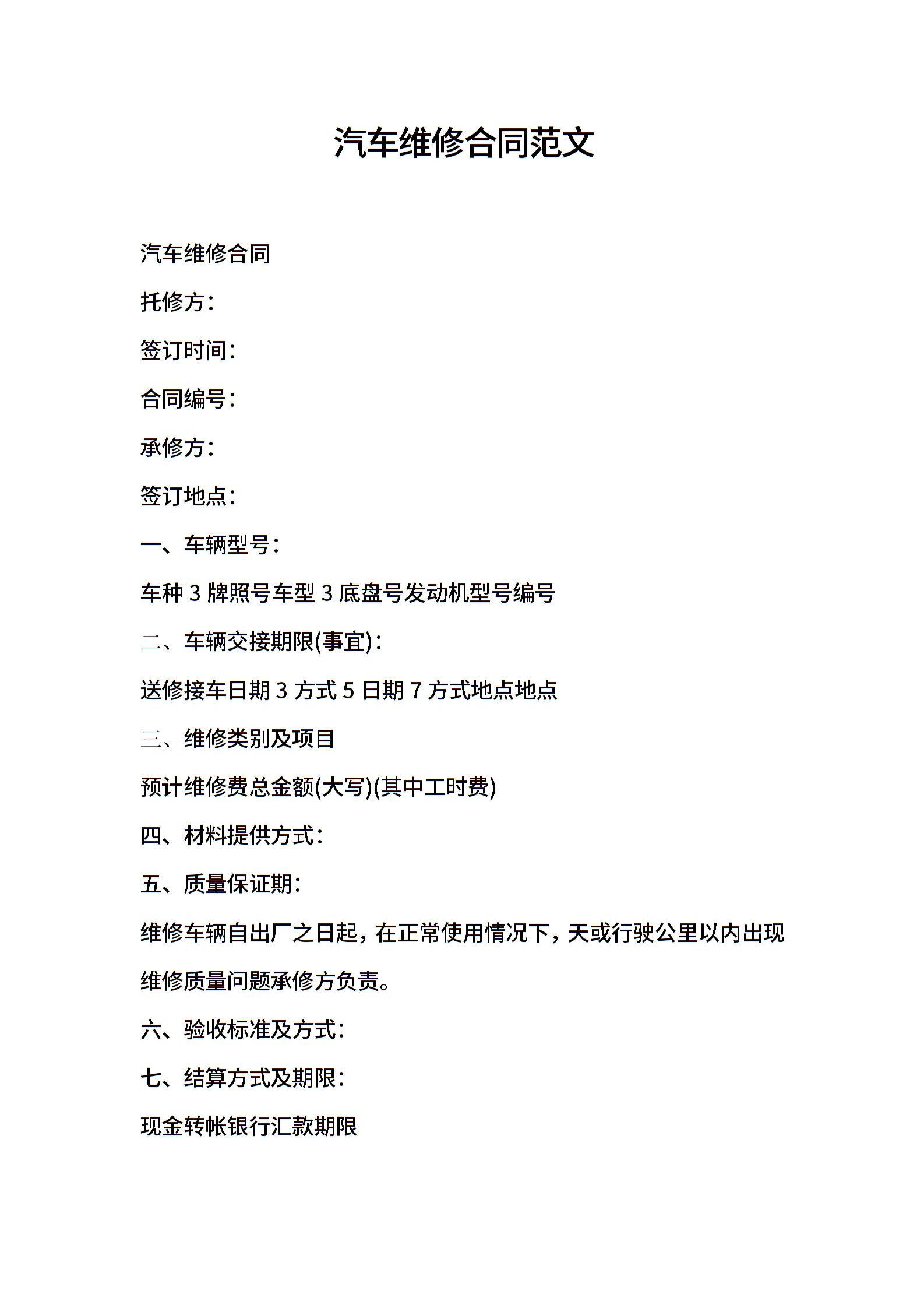 汽车维修合同范文