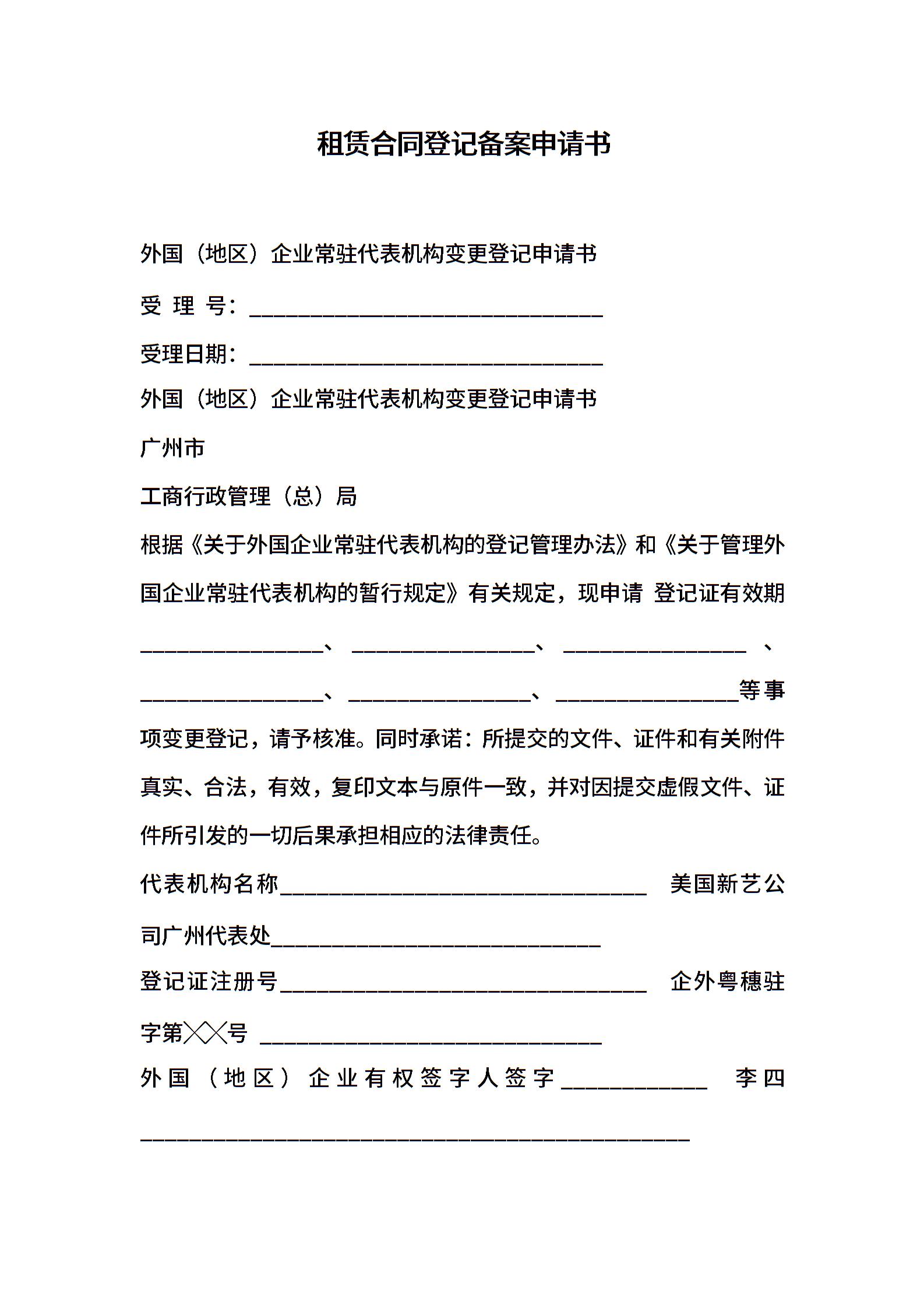 租赁合同登记备案申请书