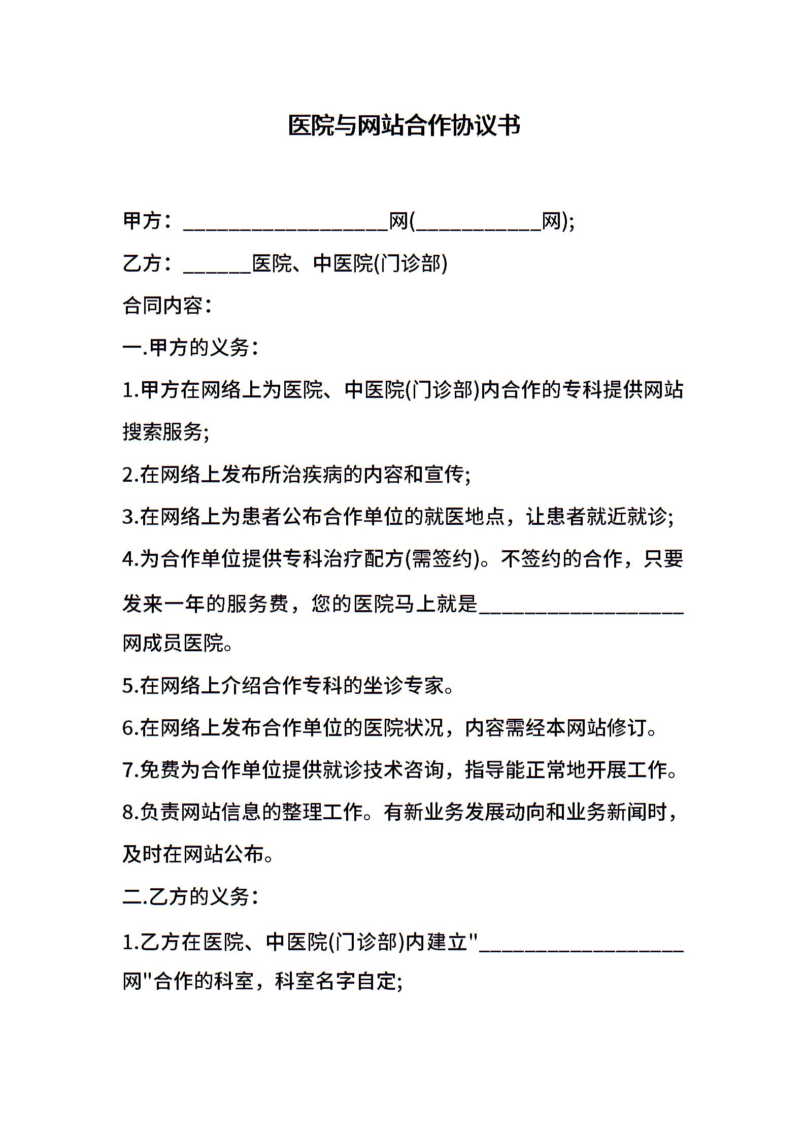 医院与网站合作协议书