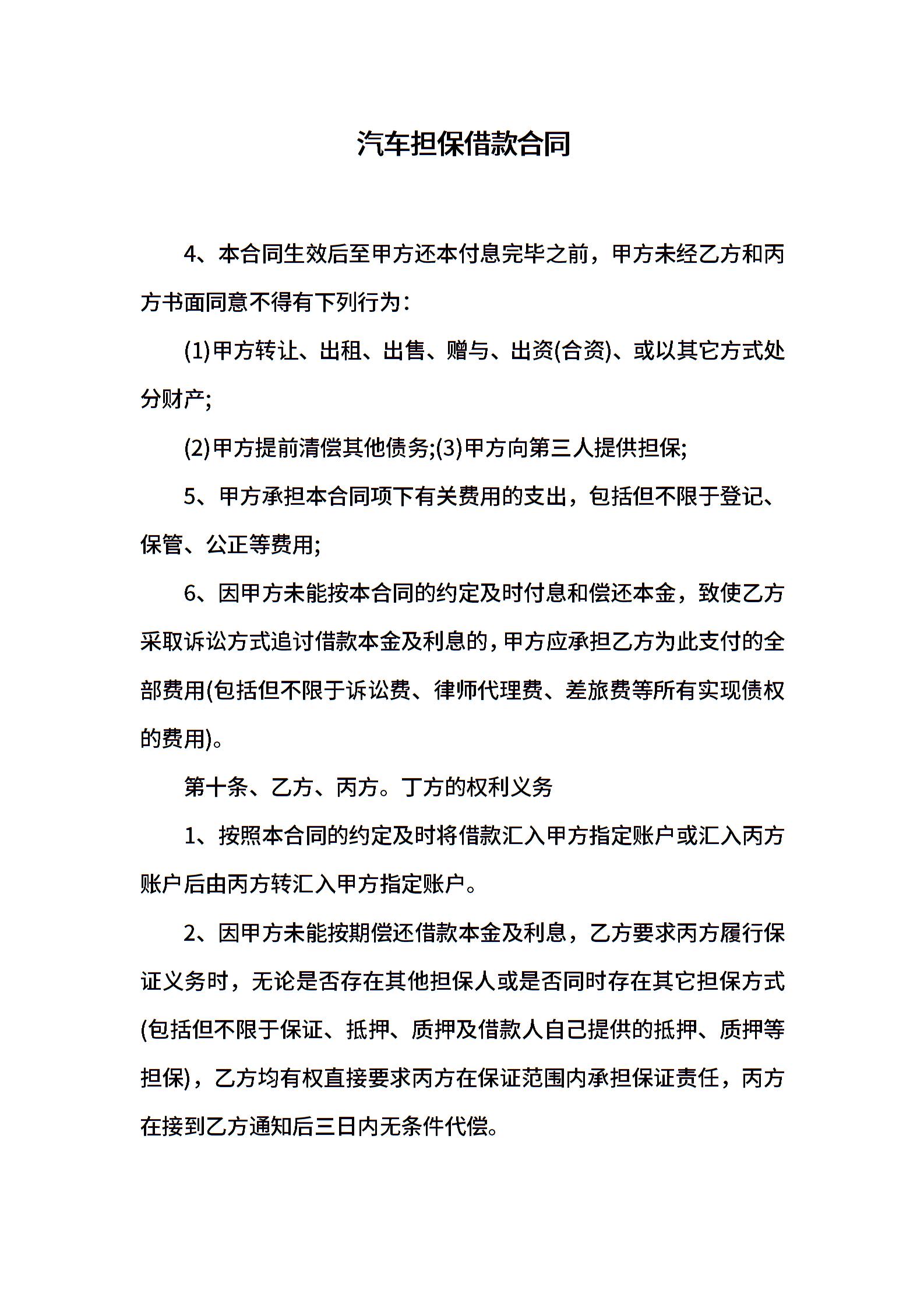 汽车担保借款合同