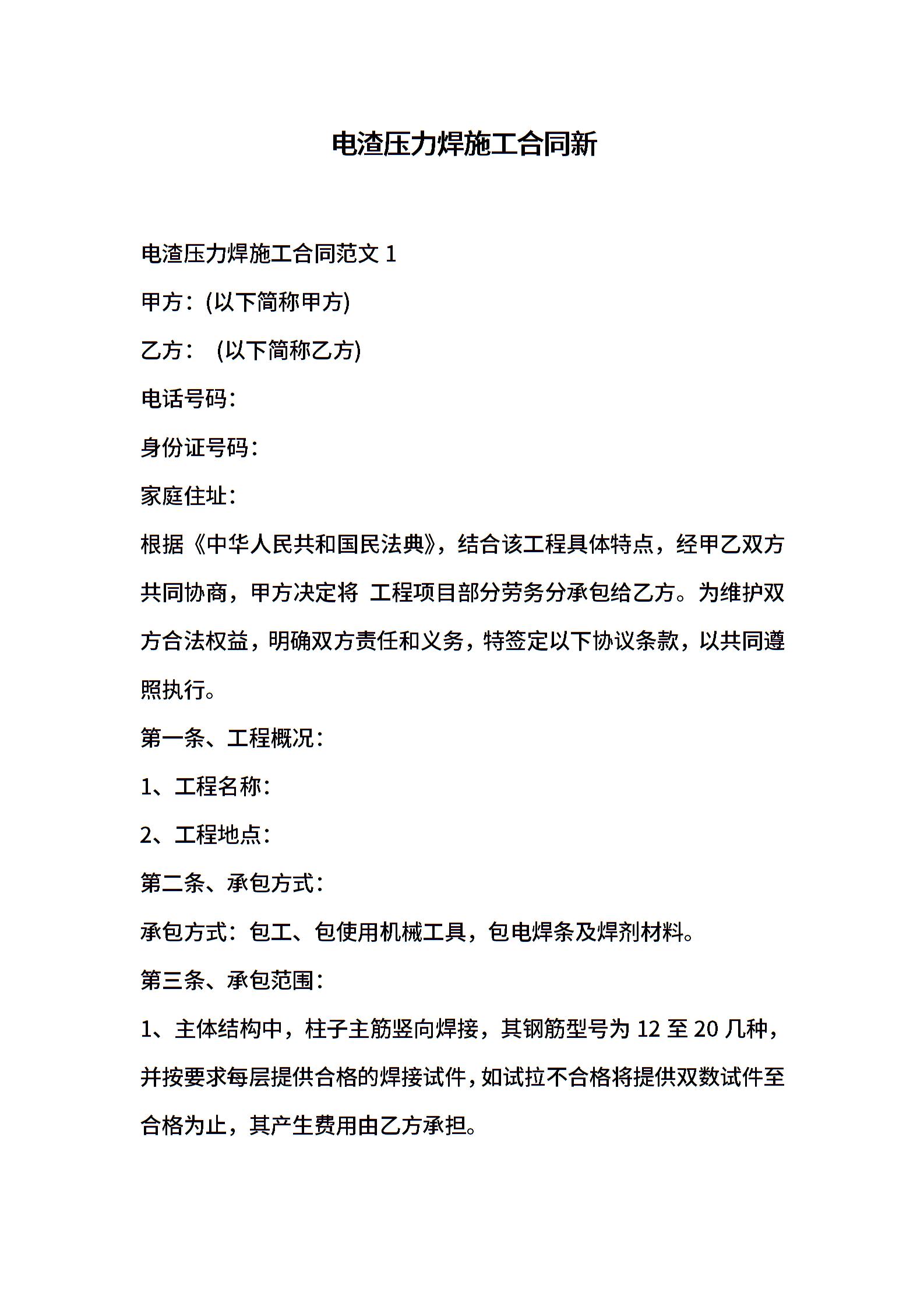 电渣压力焊施工合同新