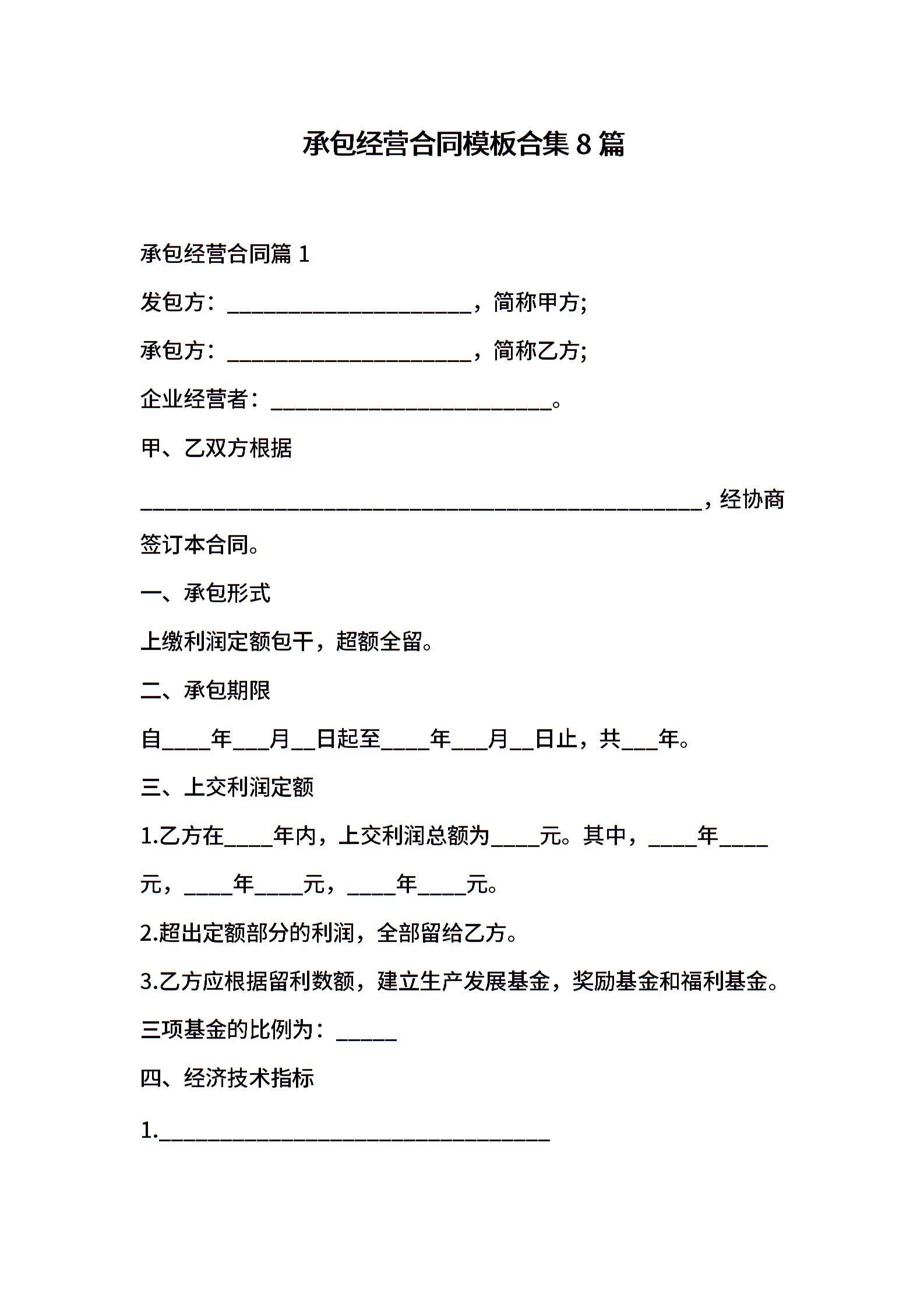 承包经营合同模板合集8篇