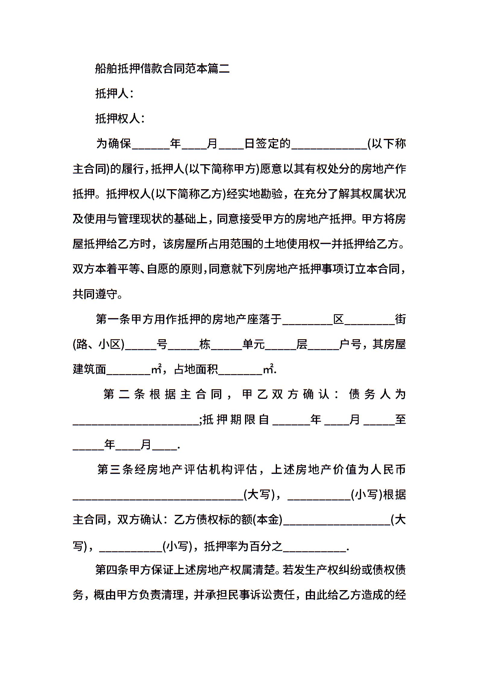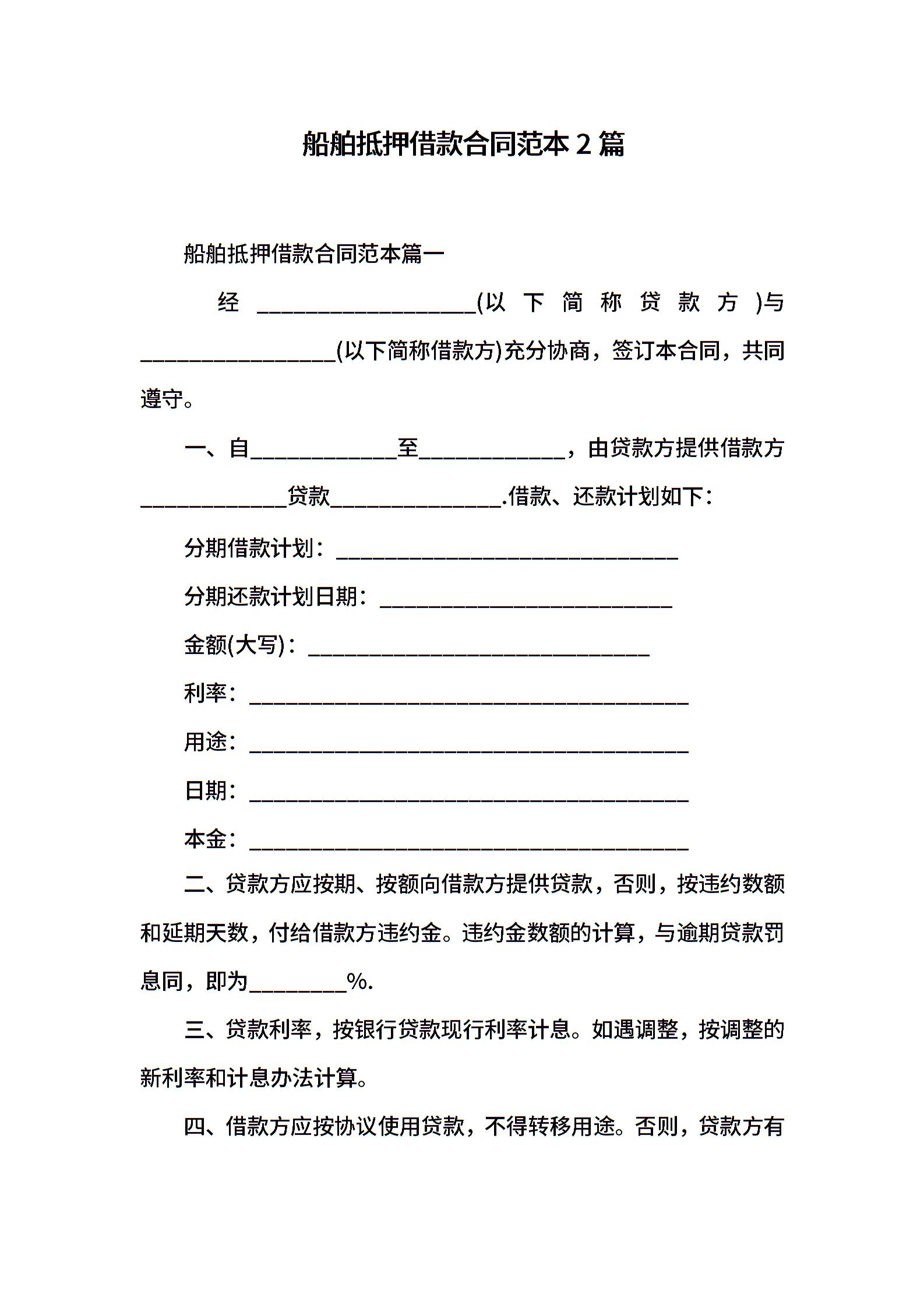 船舶抵押借款合同范本2篇