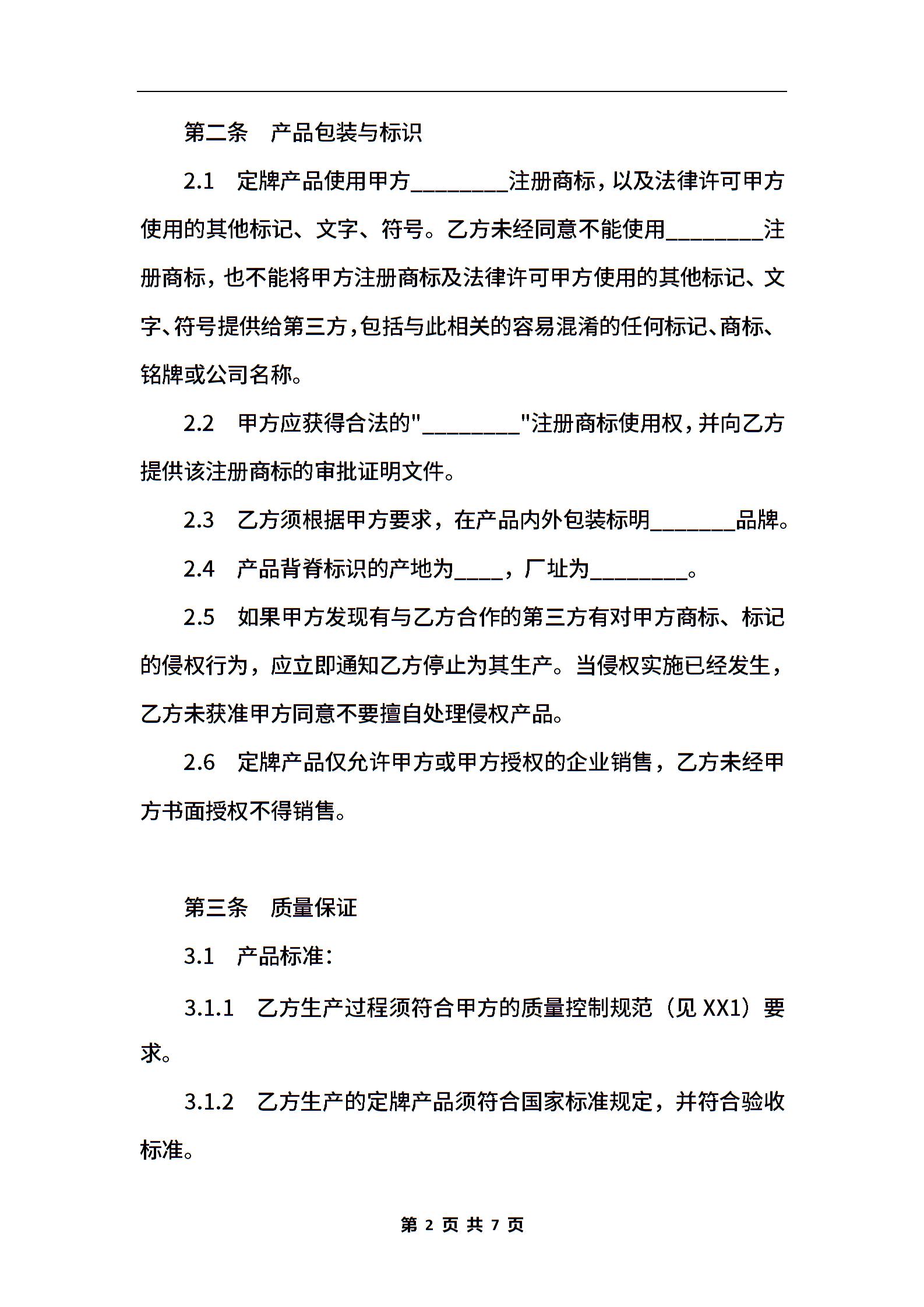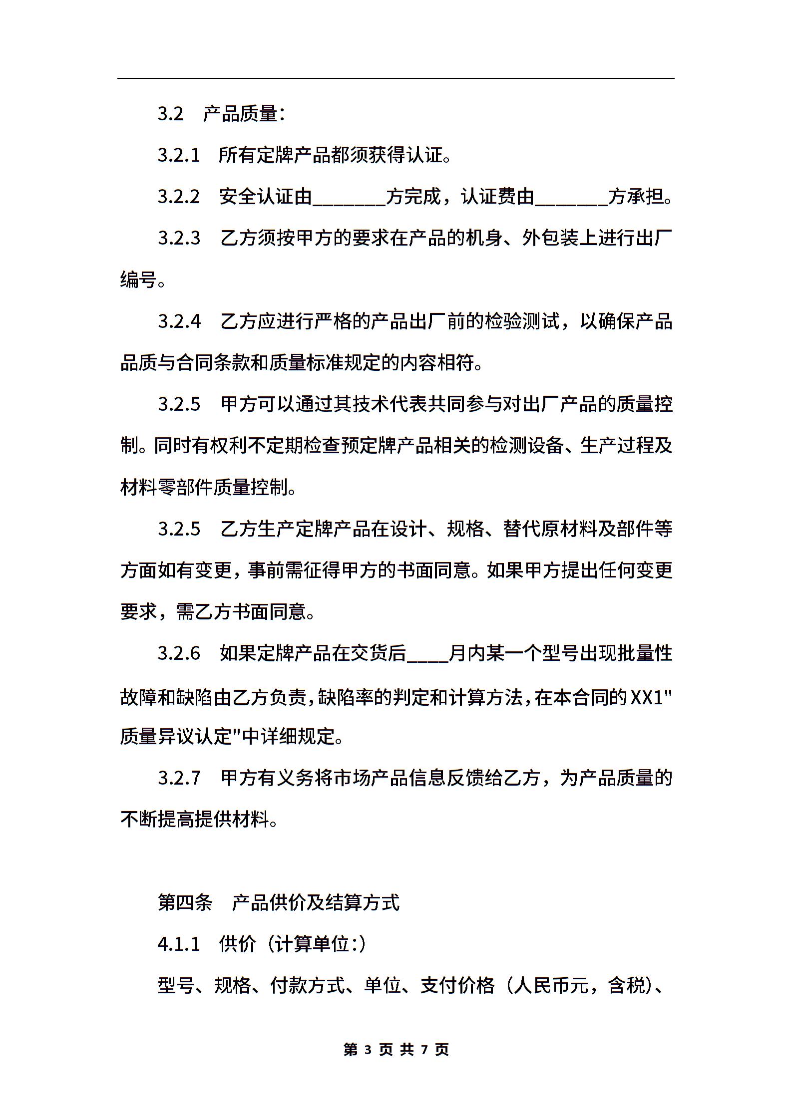 家用电器定牌产品合作合同书