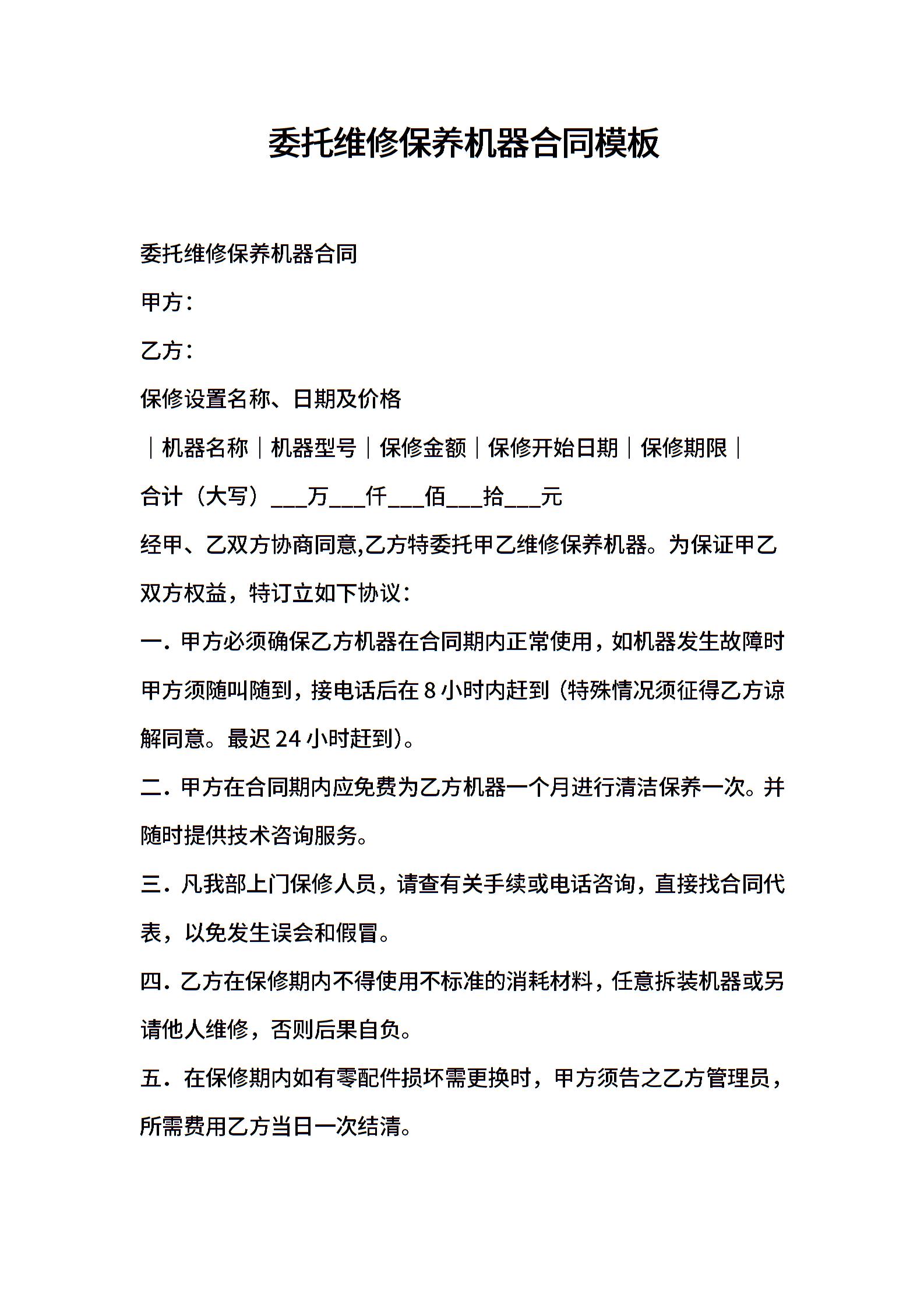 委托维修保养机器合同模板