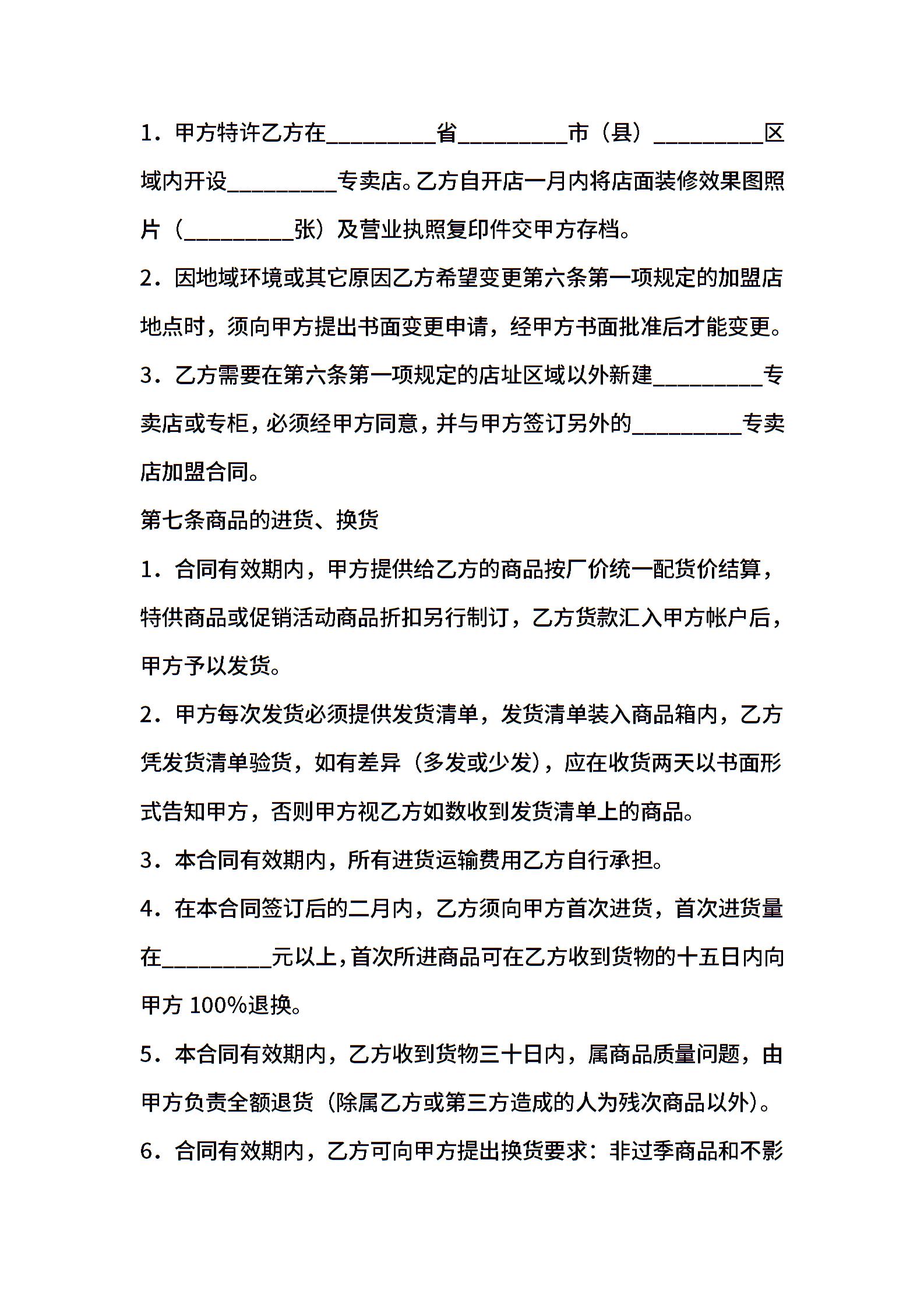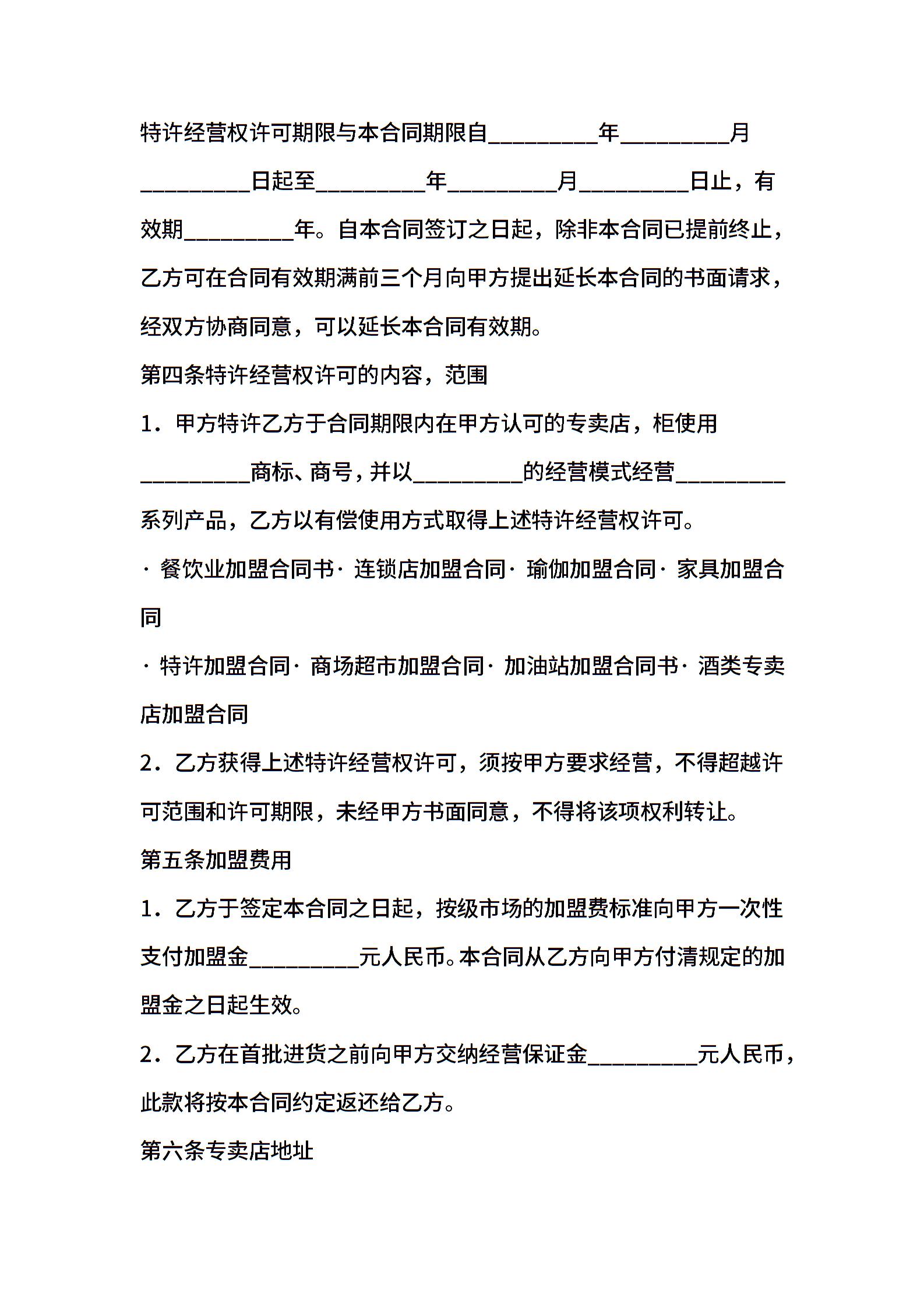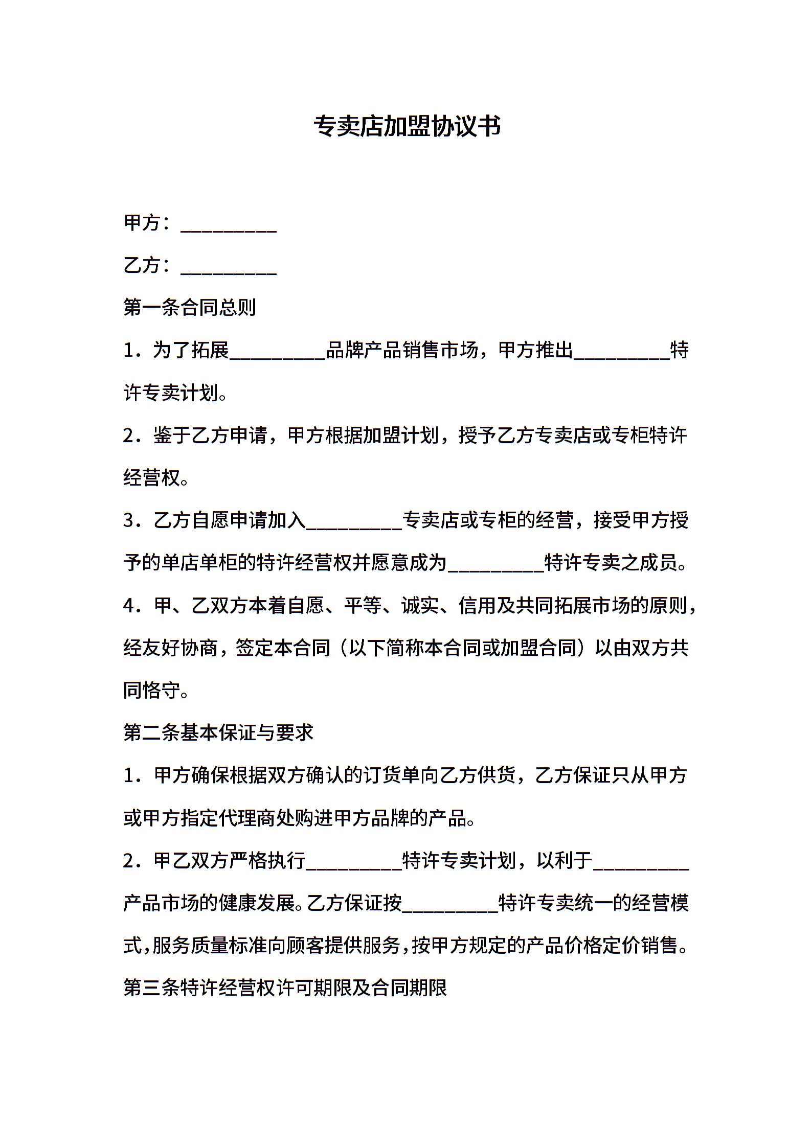 专卖店加盟协议书