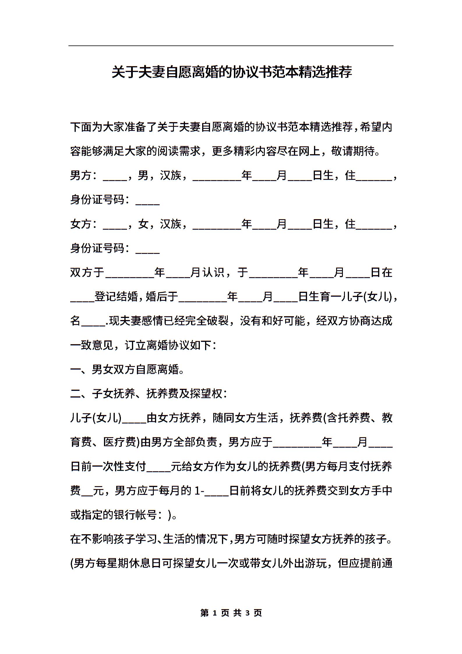 关于夫妻自愿离婚的协议书范本精选推荐