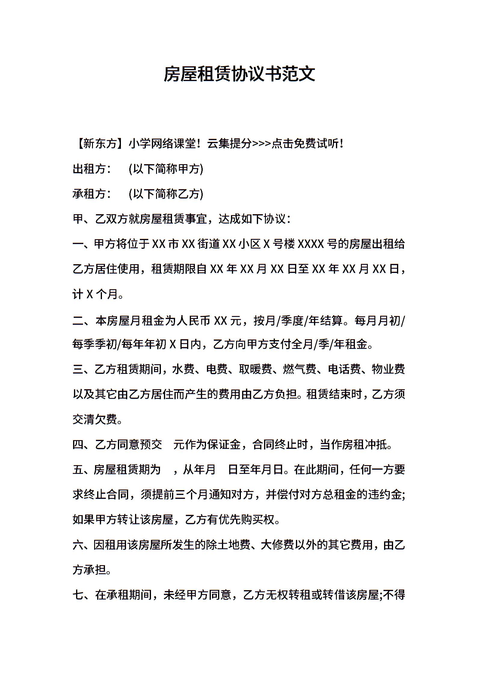 当前位置:量子办公 > 合同模板 > 房屋租赁 >