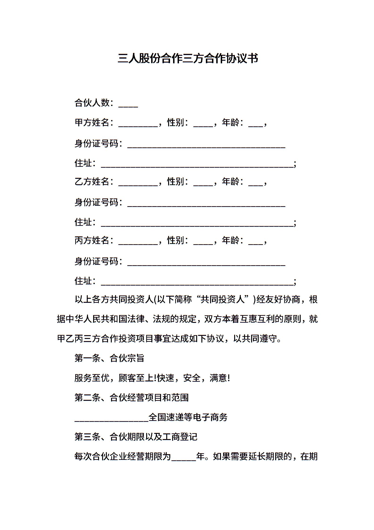 三人股份三方合作协议书