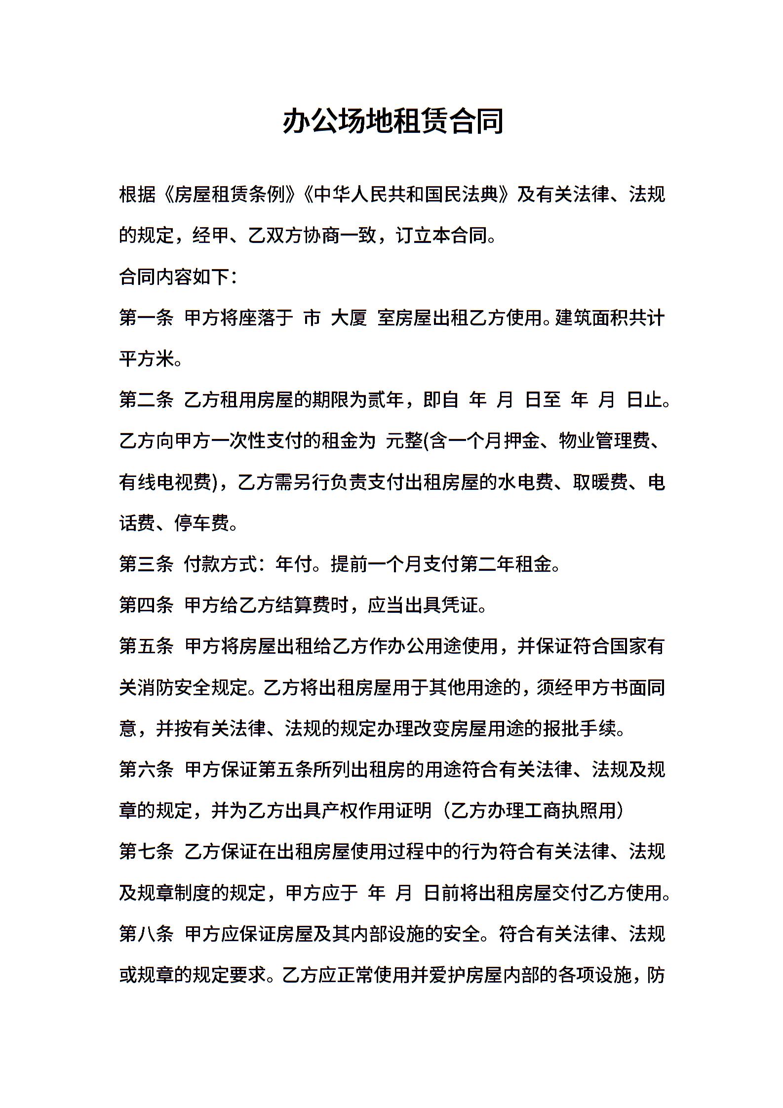 2021年办公场地租赁合同