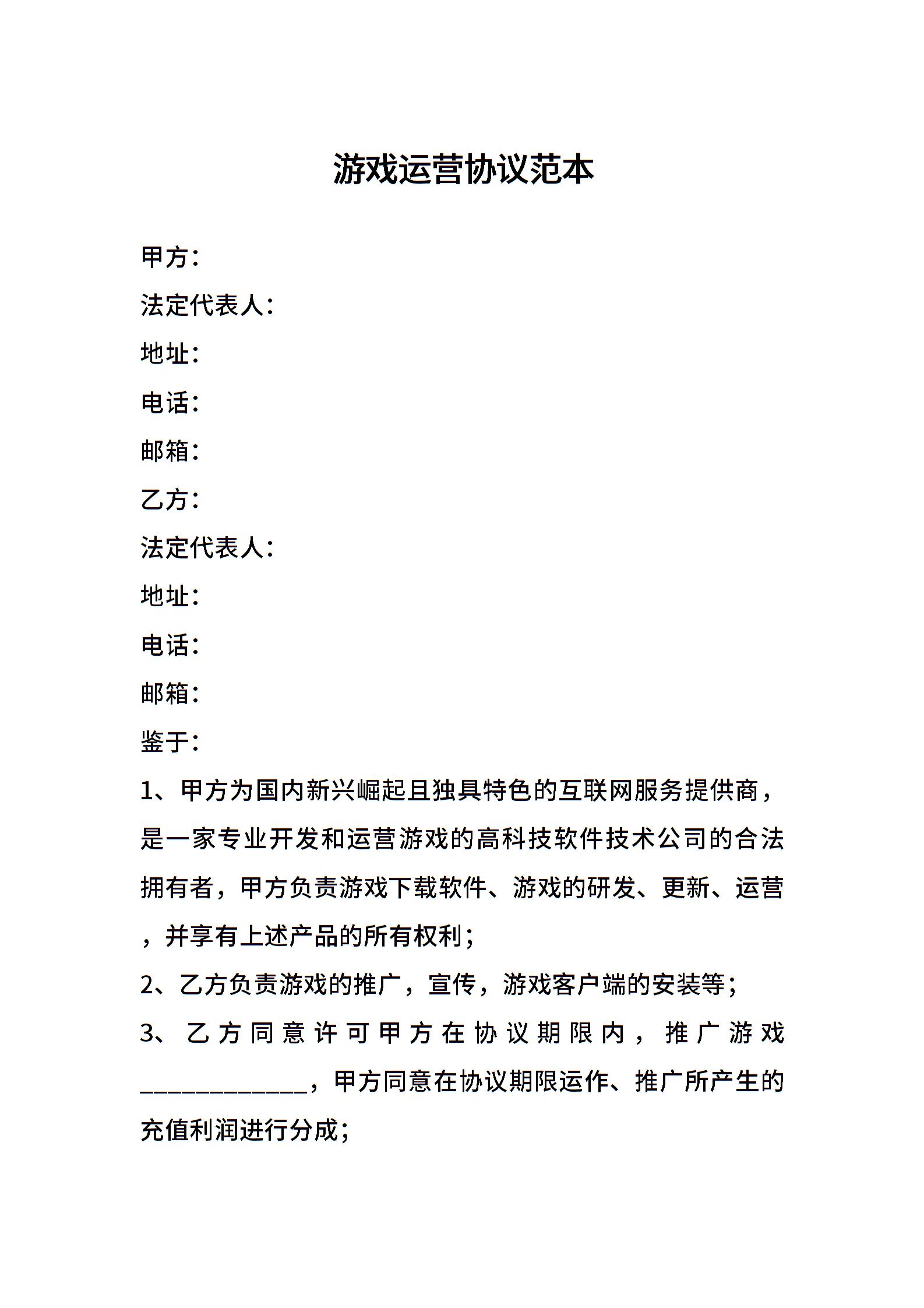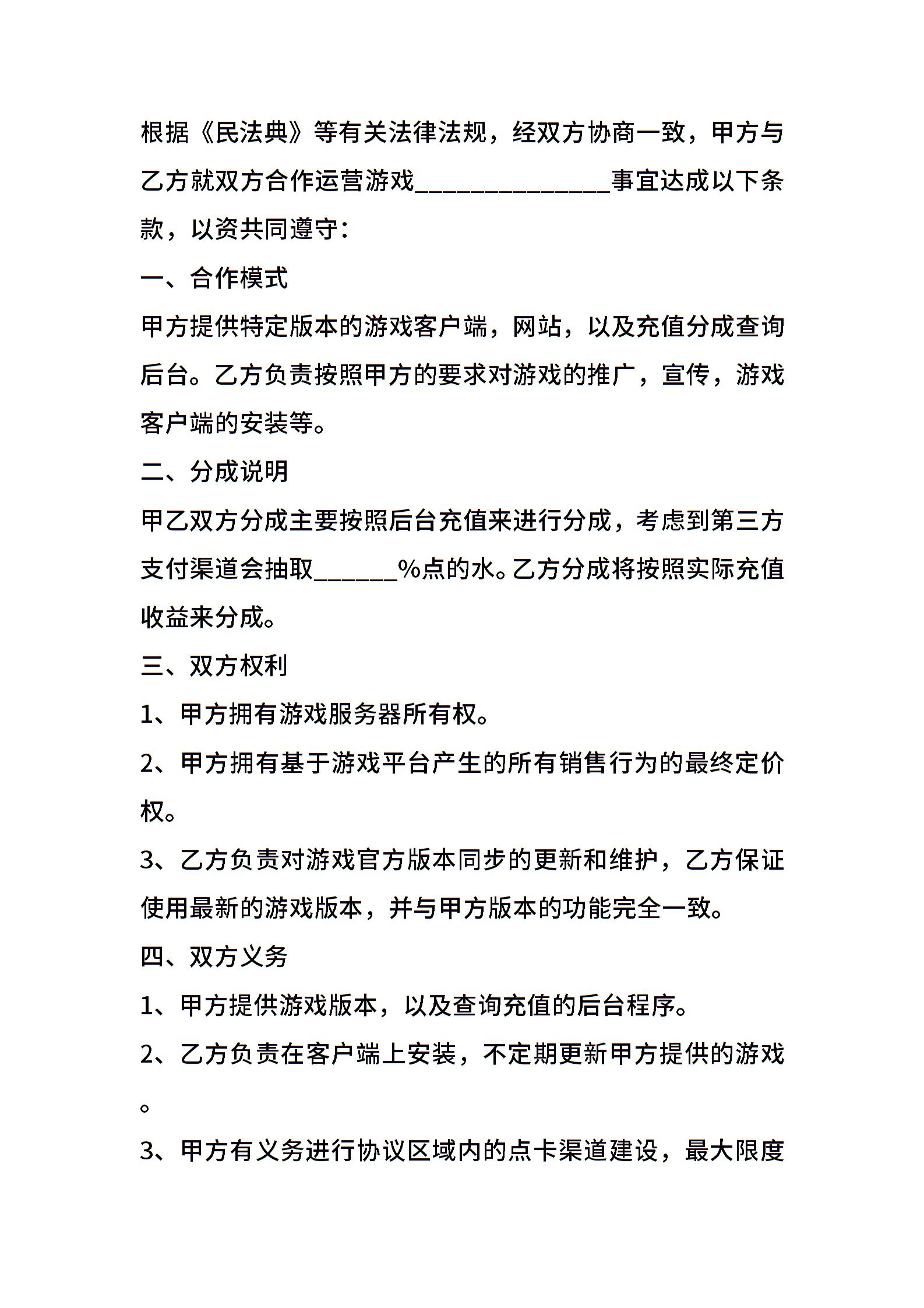 当前位置:量子办公 > 合同模板 > 游戏合同 >
