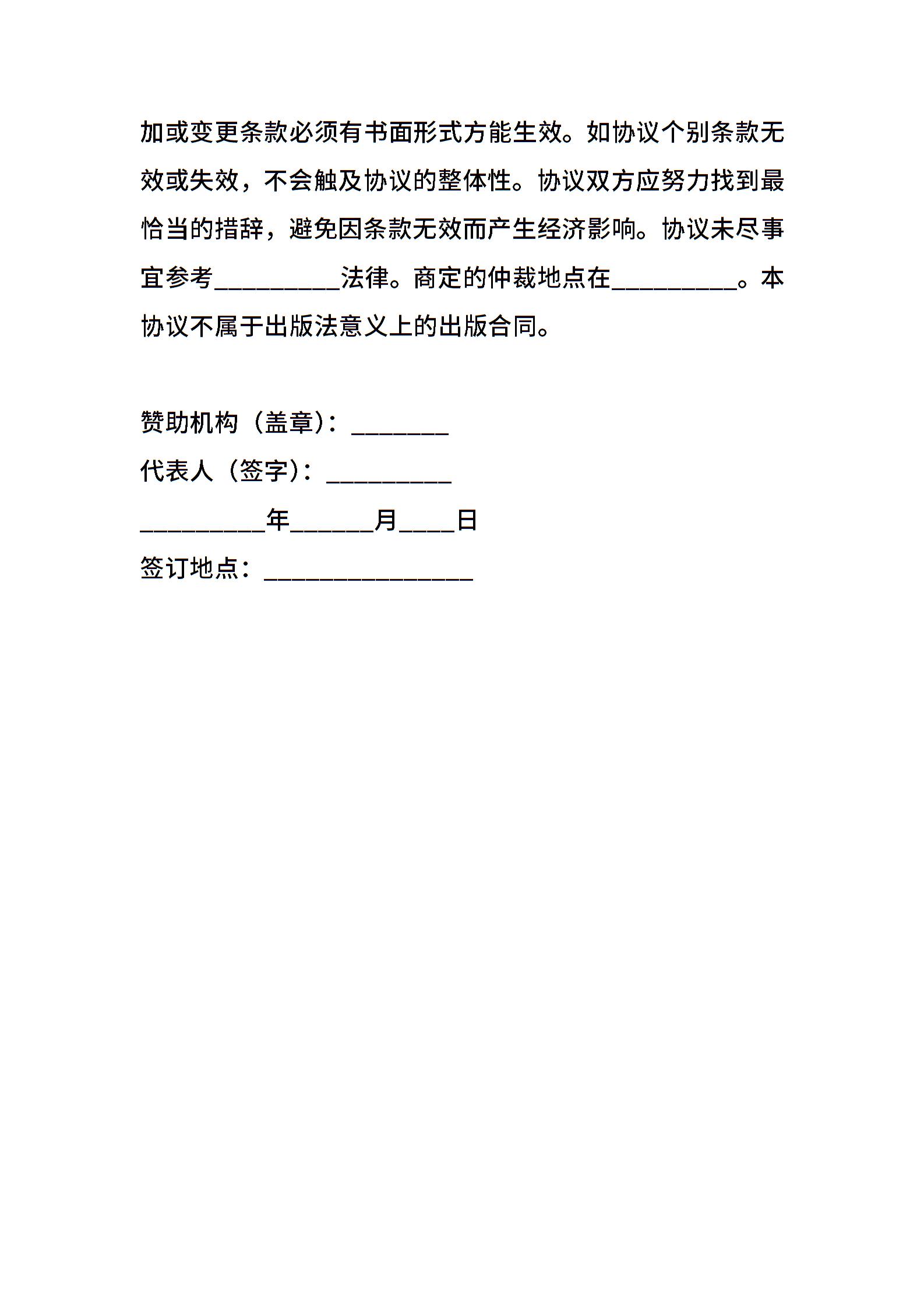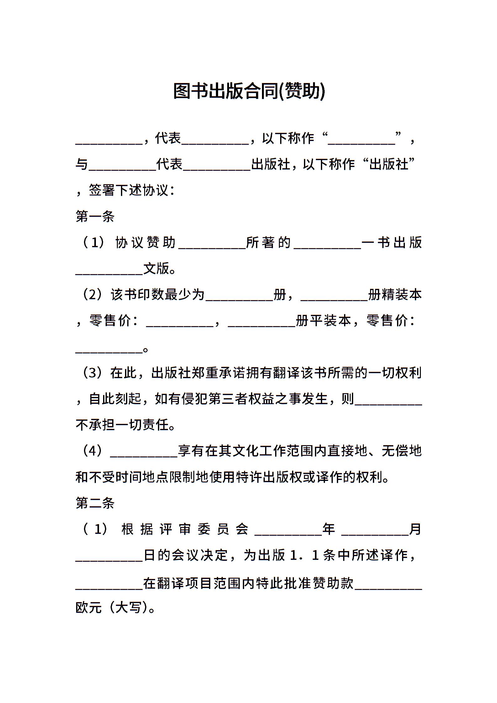 图书出版合同(赞助)