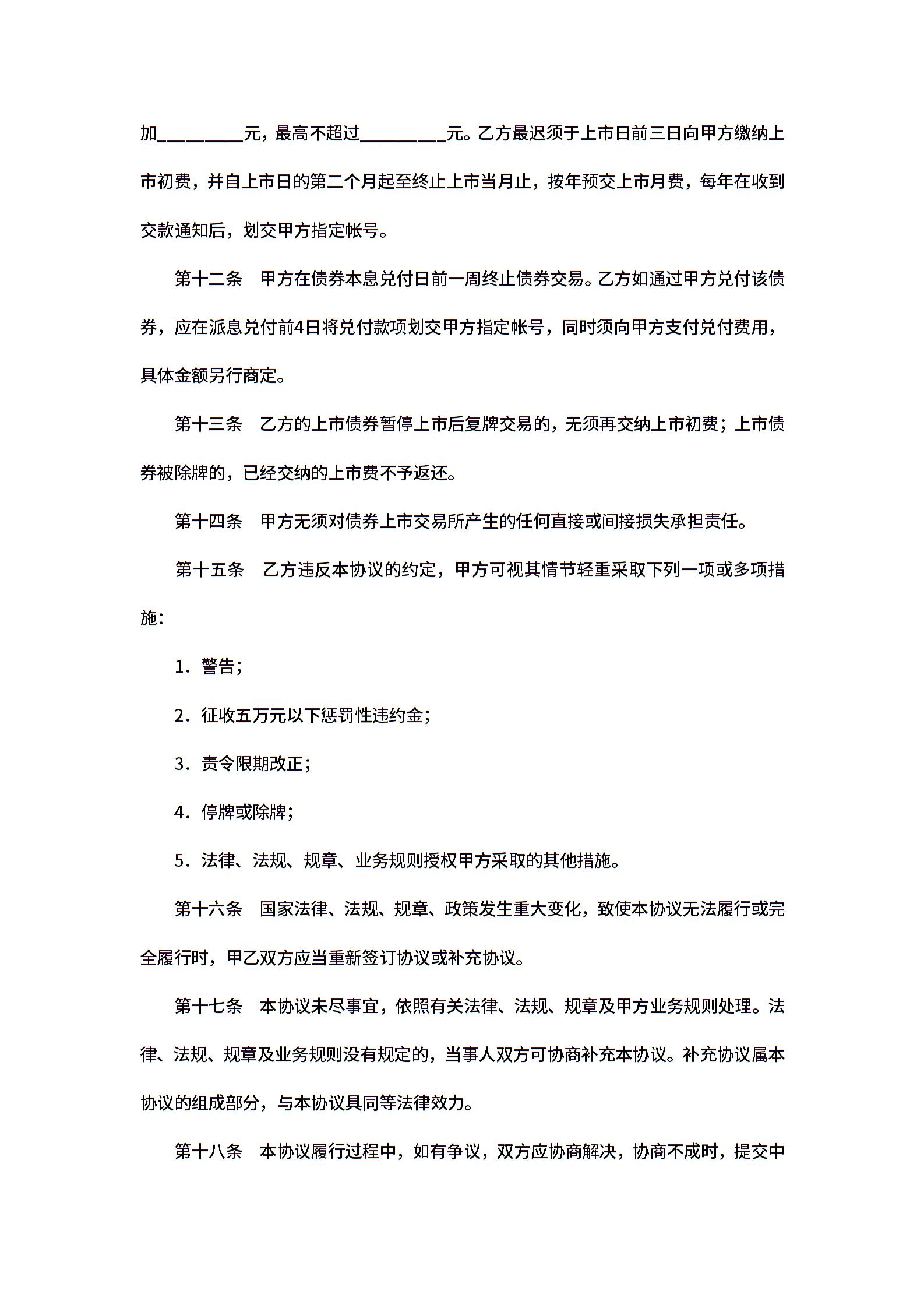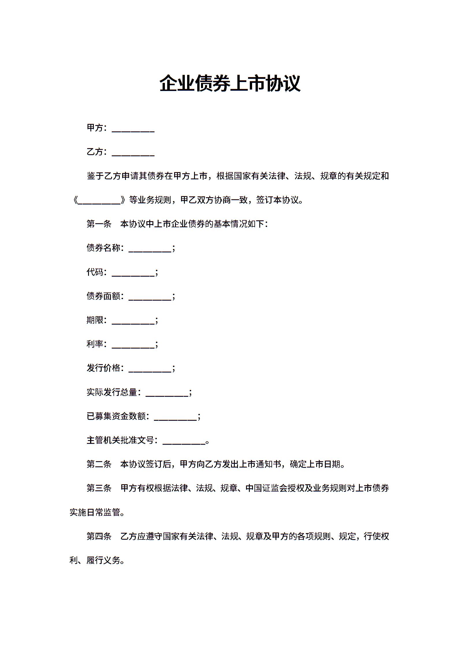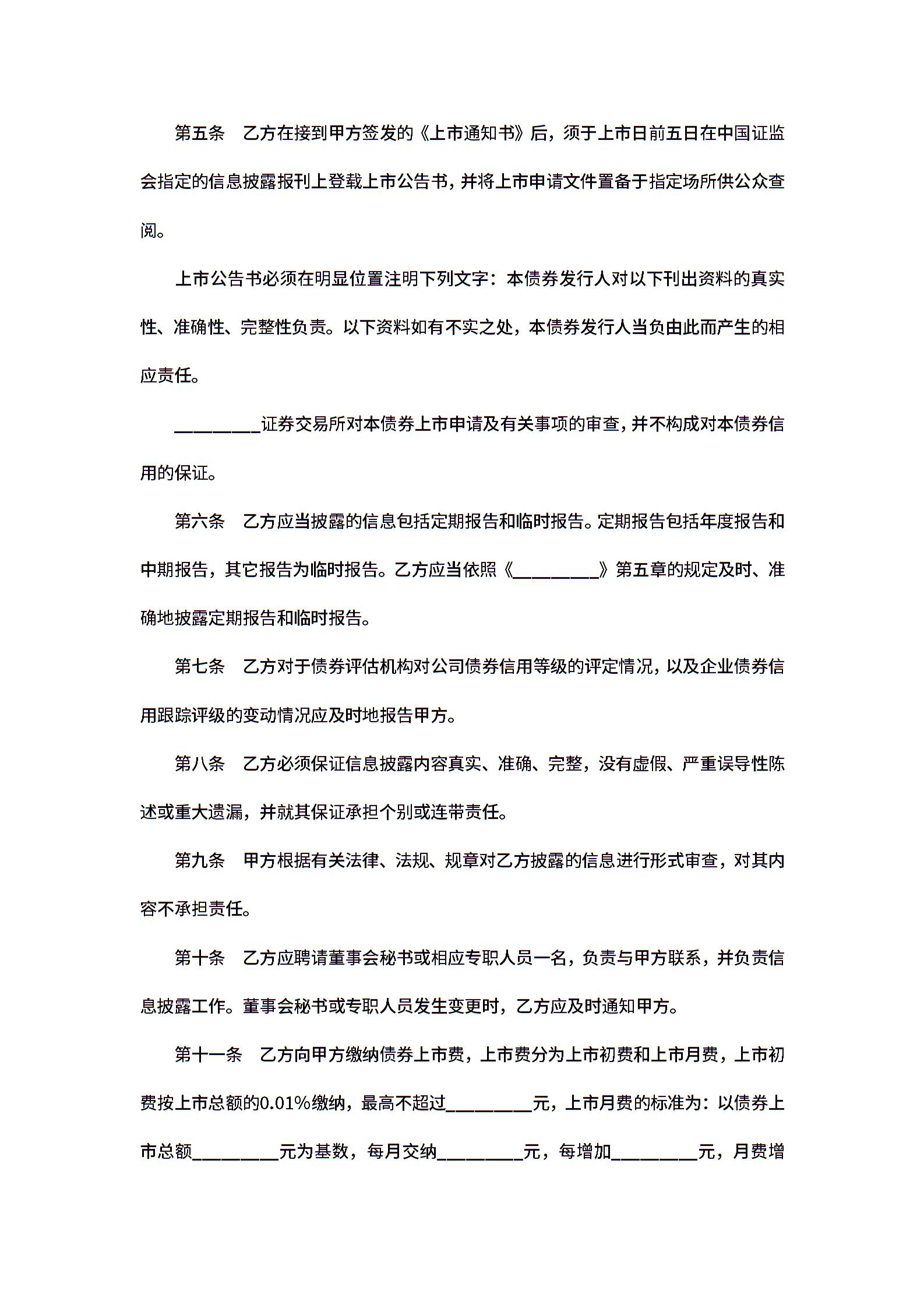 企业债券上市协议范文