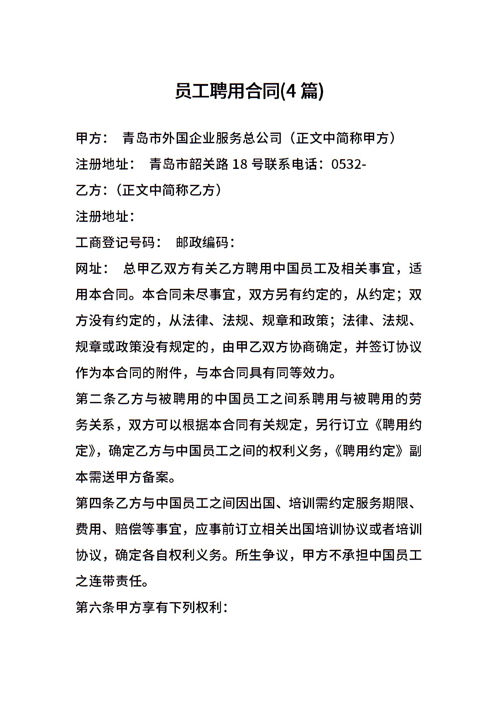 员工聘用合同(4篇)