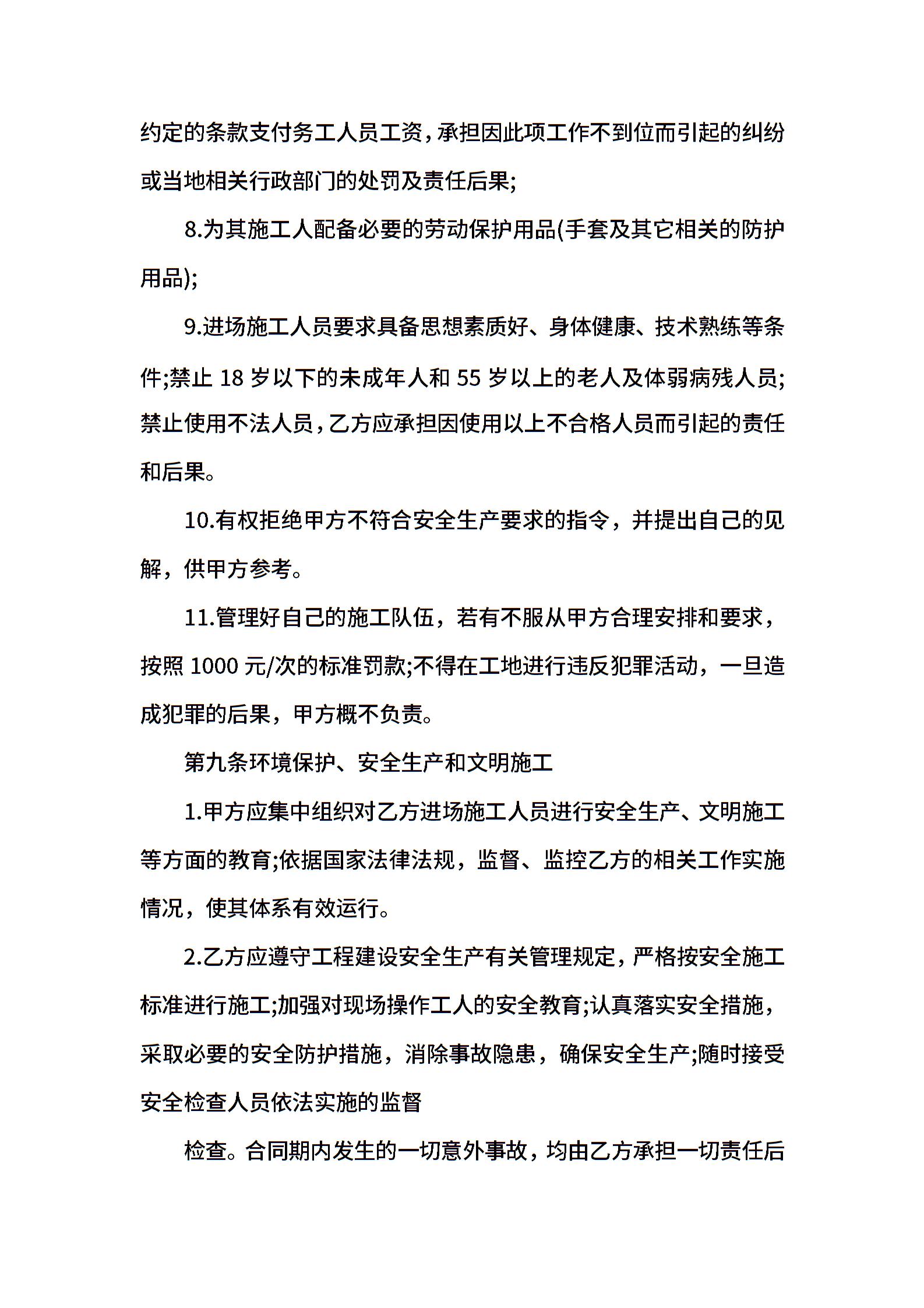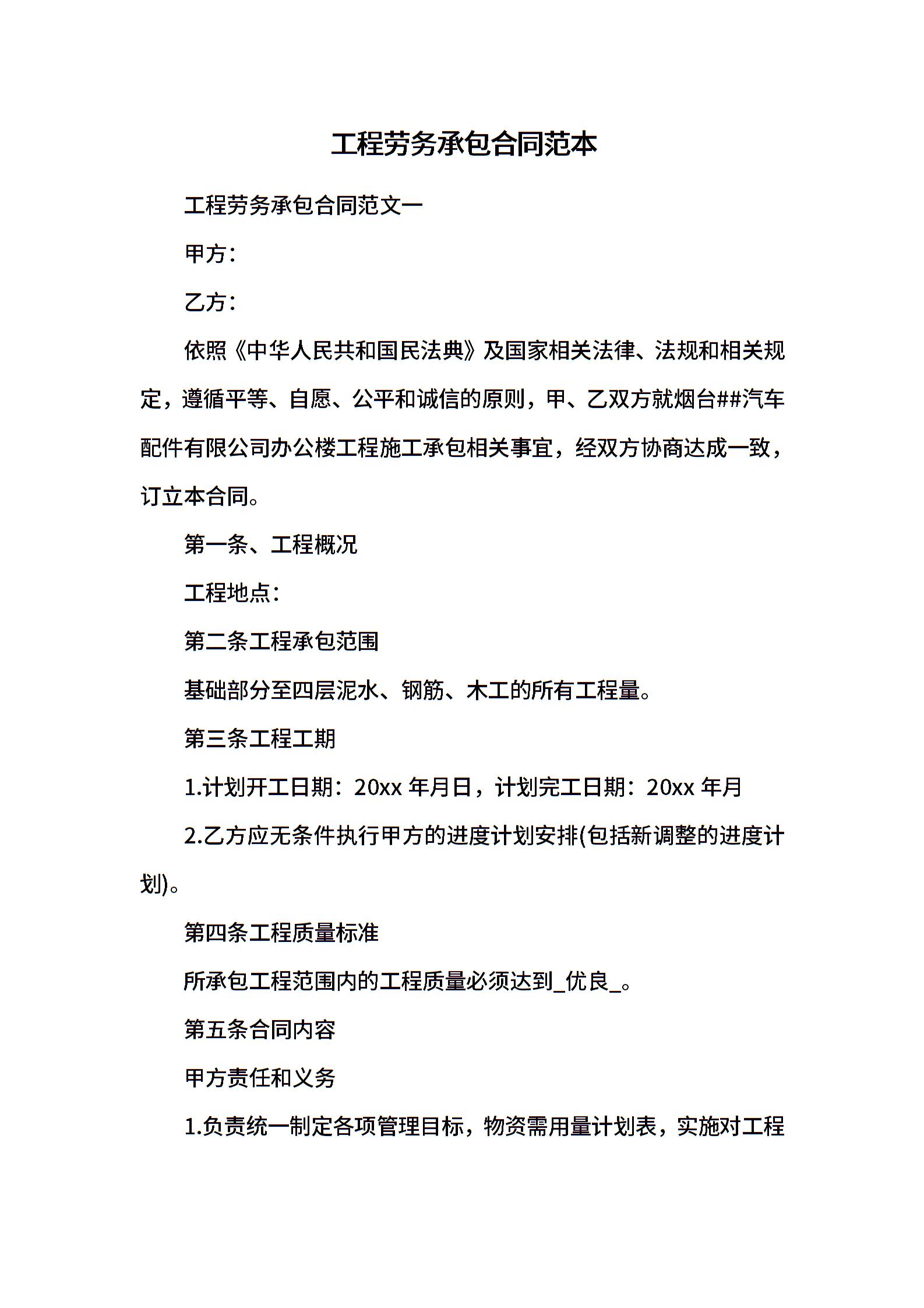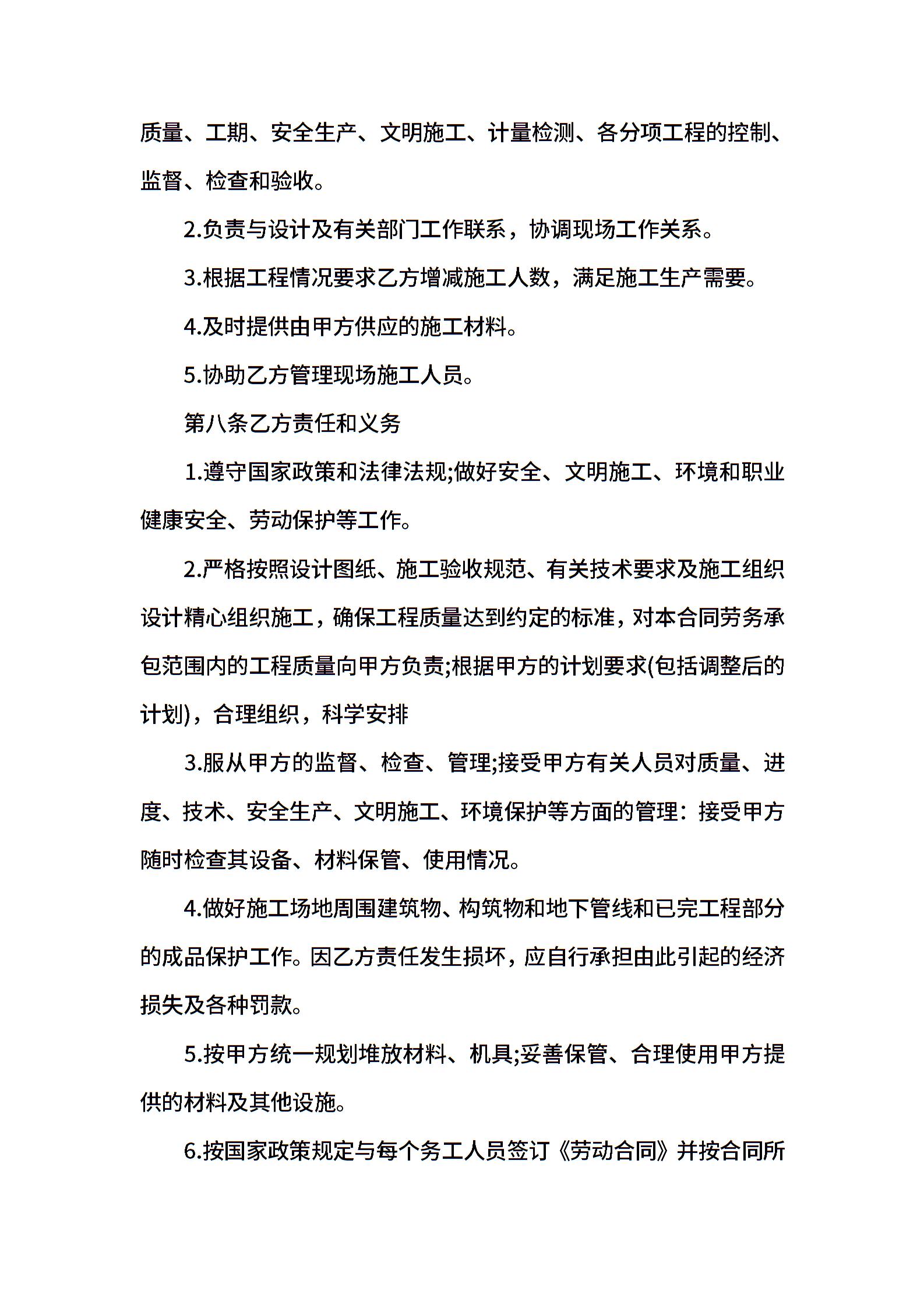 工程劳务承包合同范本