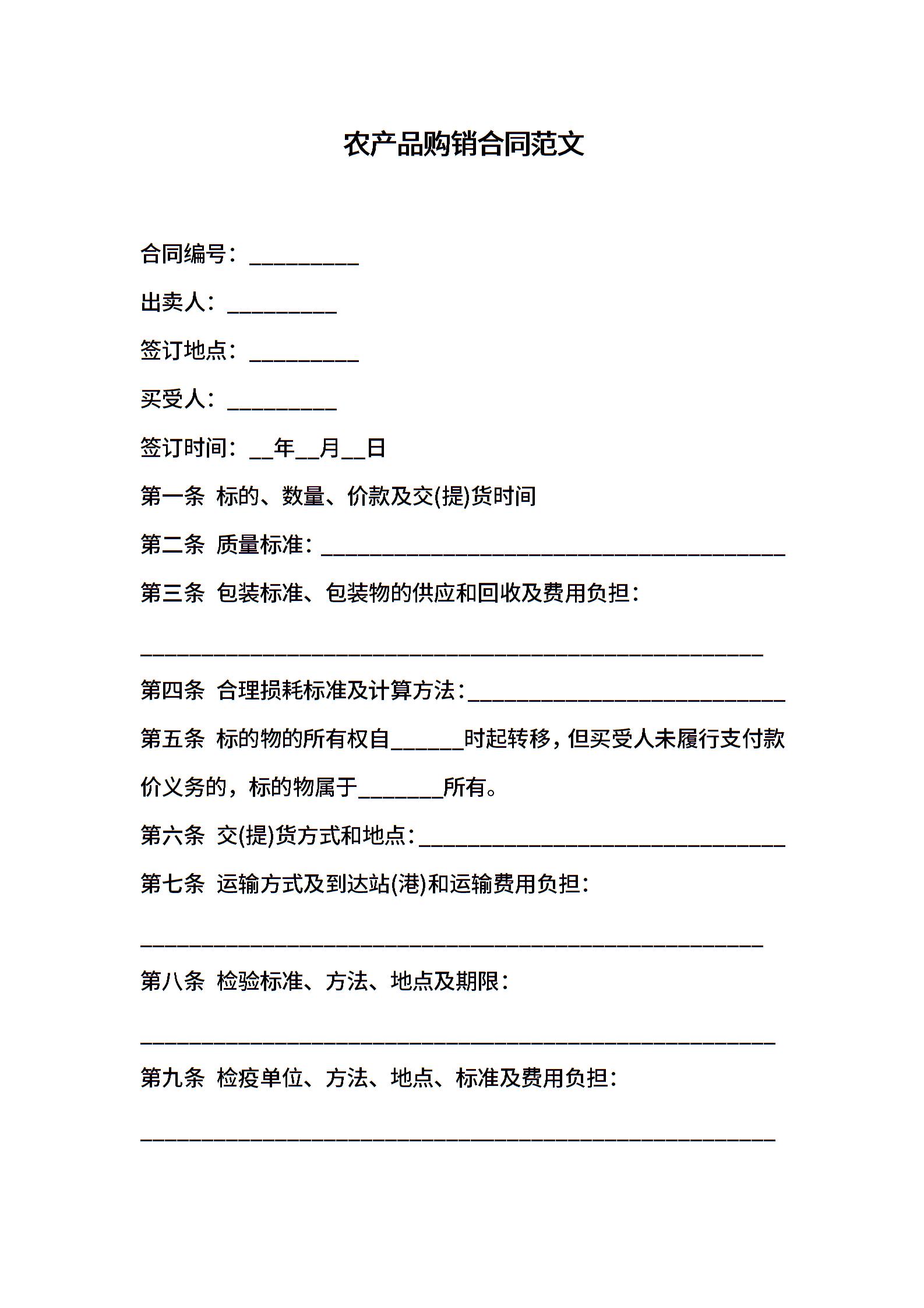 农产品购销合同范文