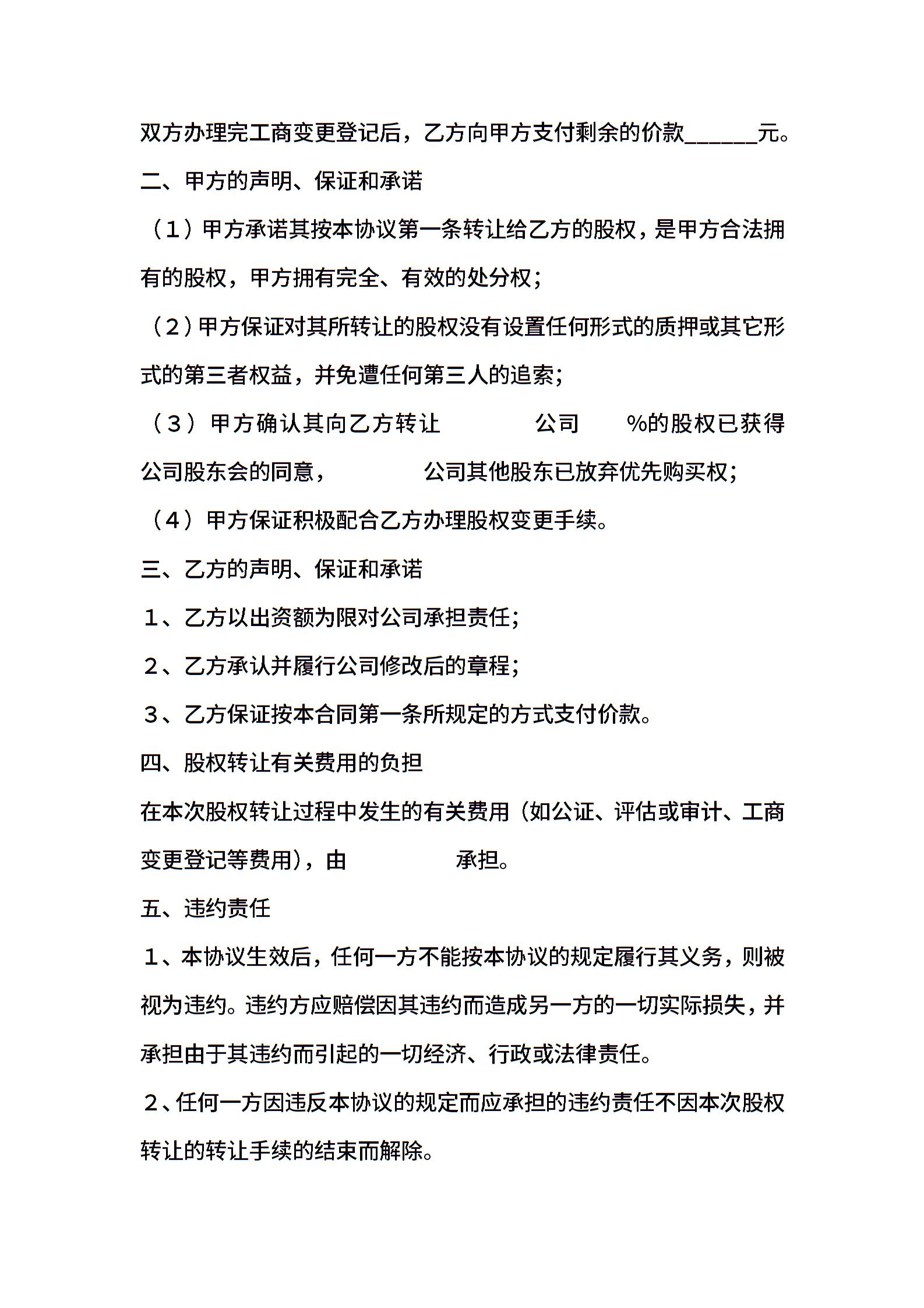 • 分类 股权转让协议