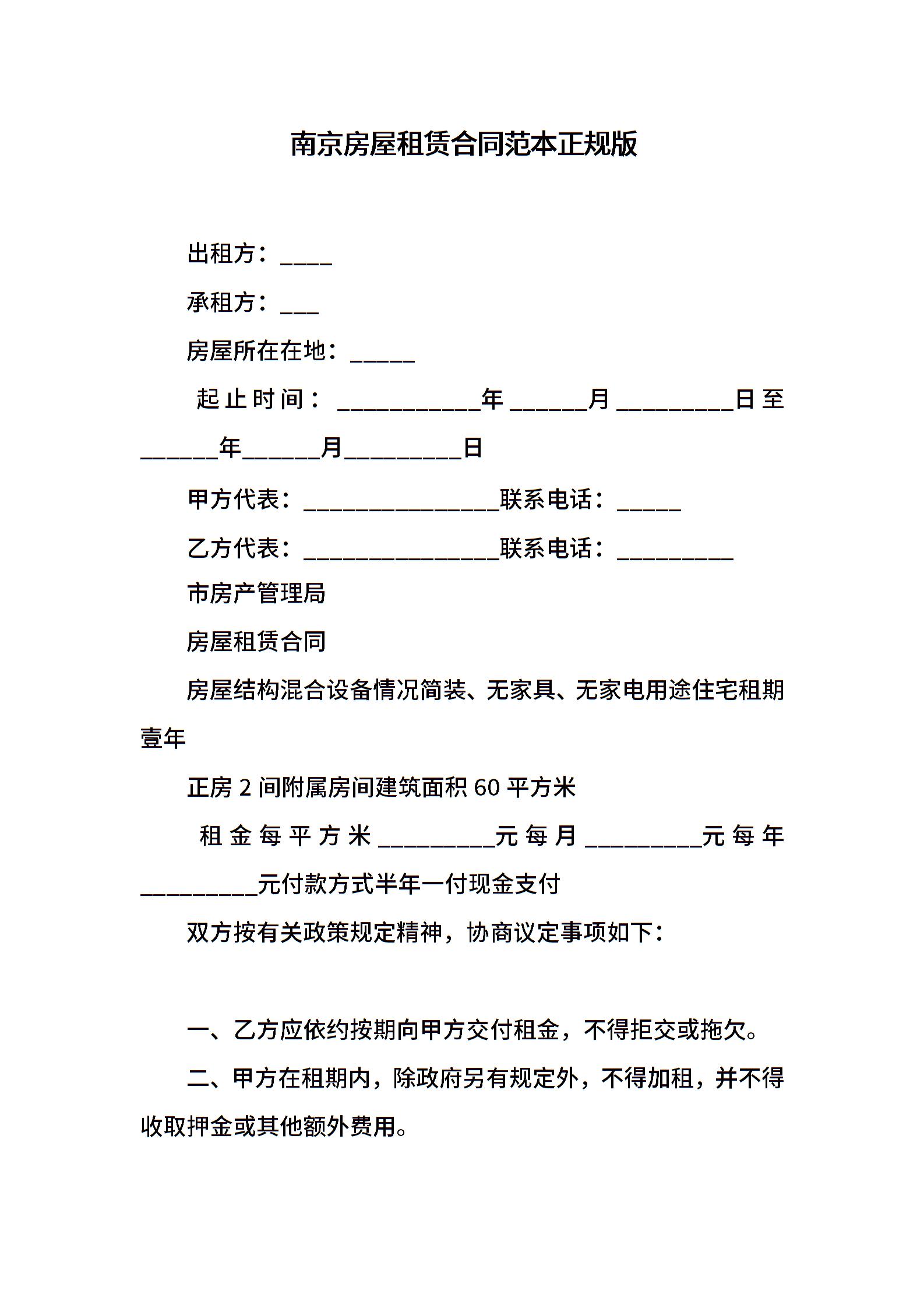 南京房屋租赁合同范本正规版