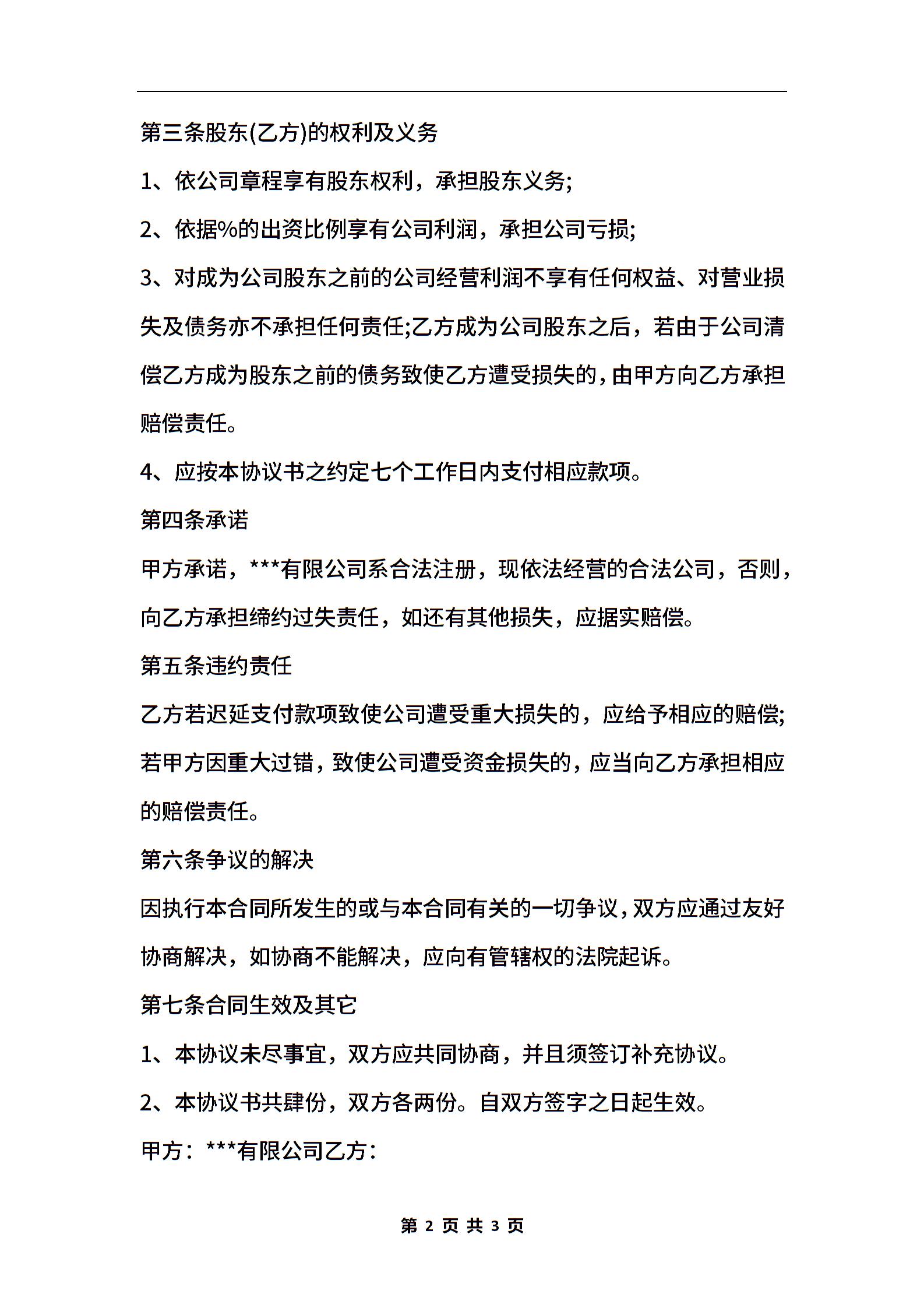 自然人入股合作协议范本