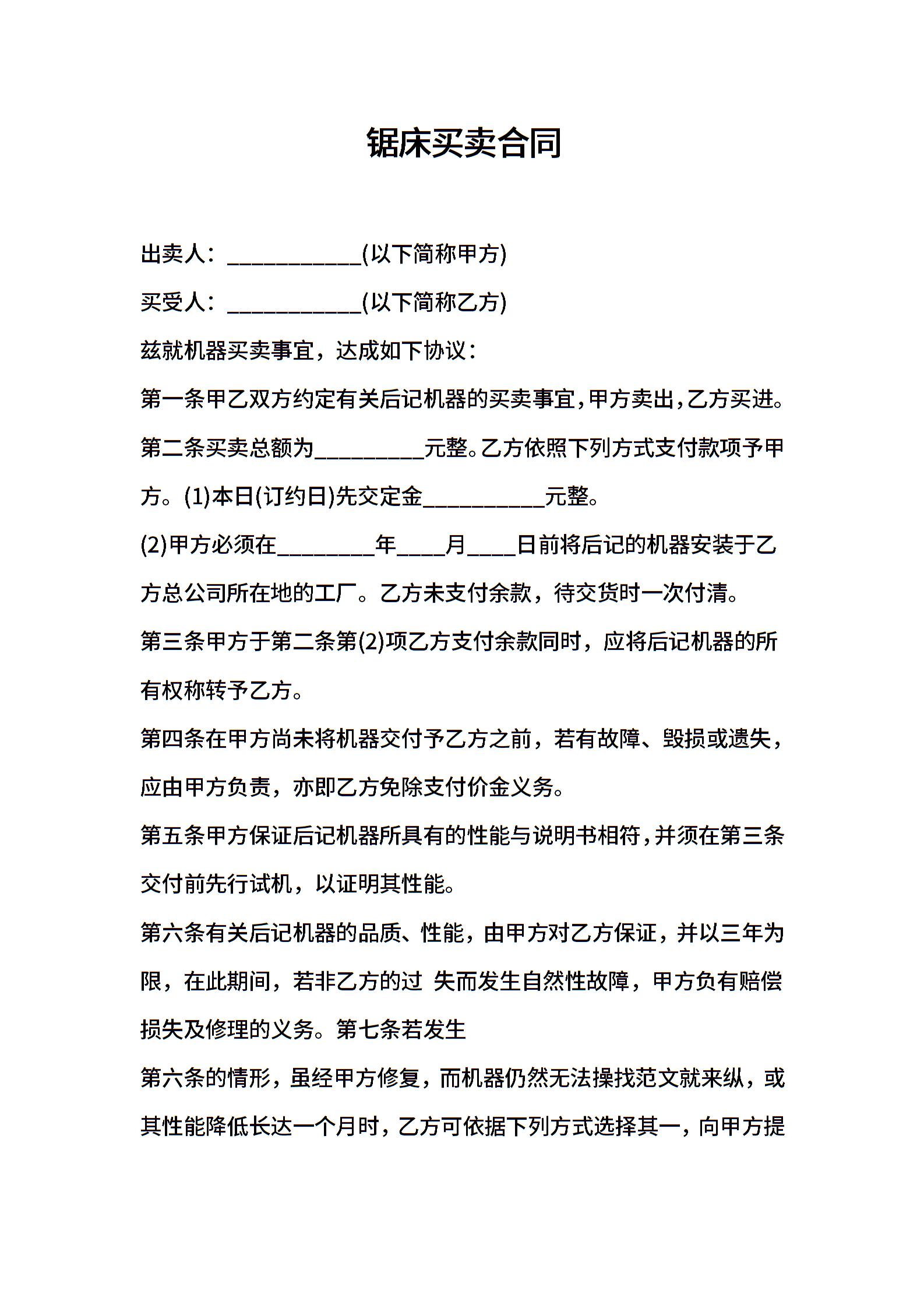 锯床买卖合同