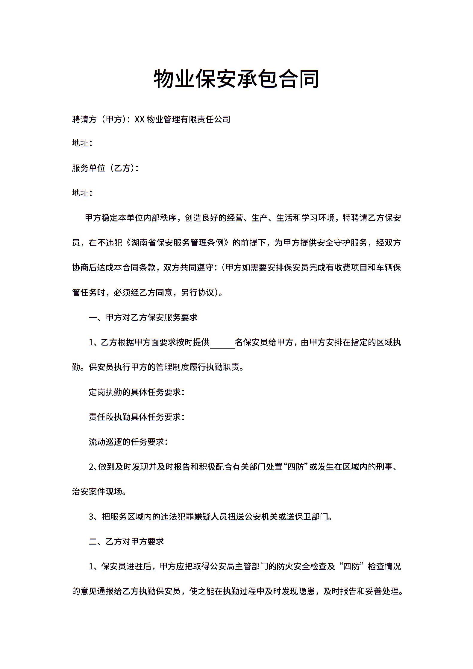 物业保安承包合同1.docx
