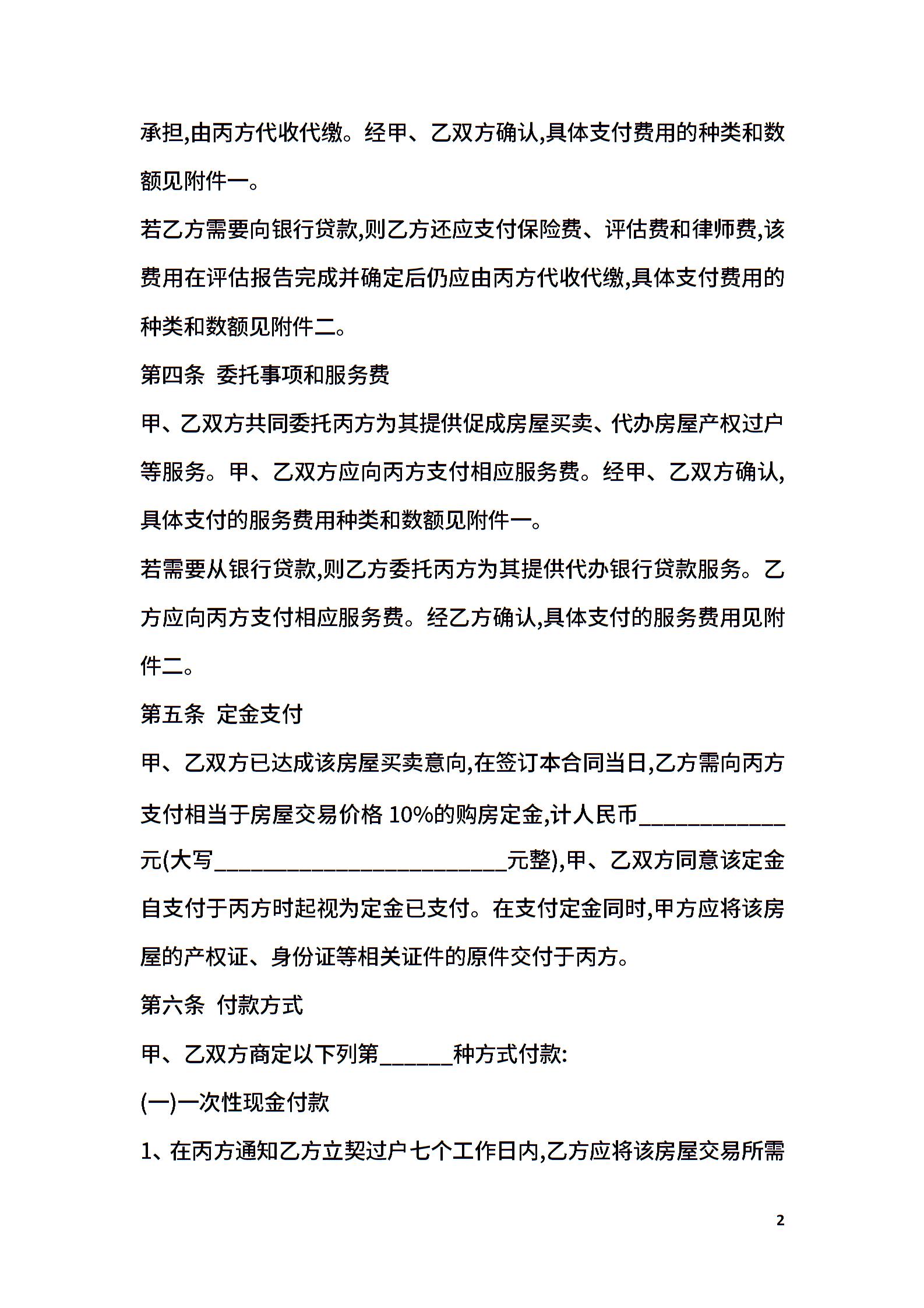 房屋买卖居间合同书范本