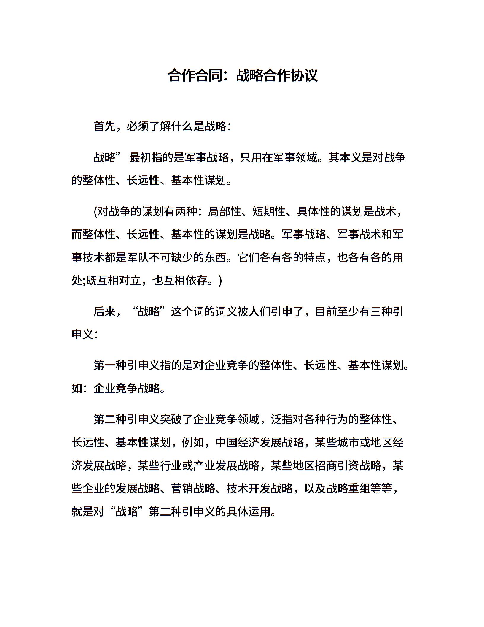 合作合同:战略合作协议