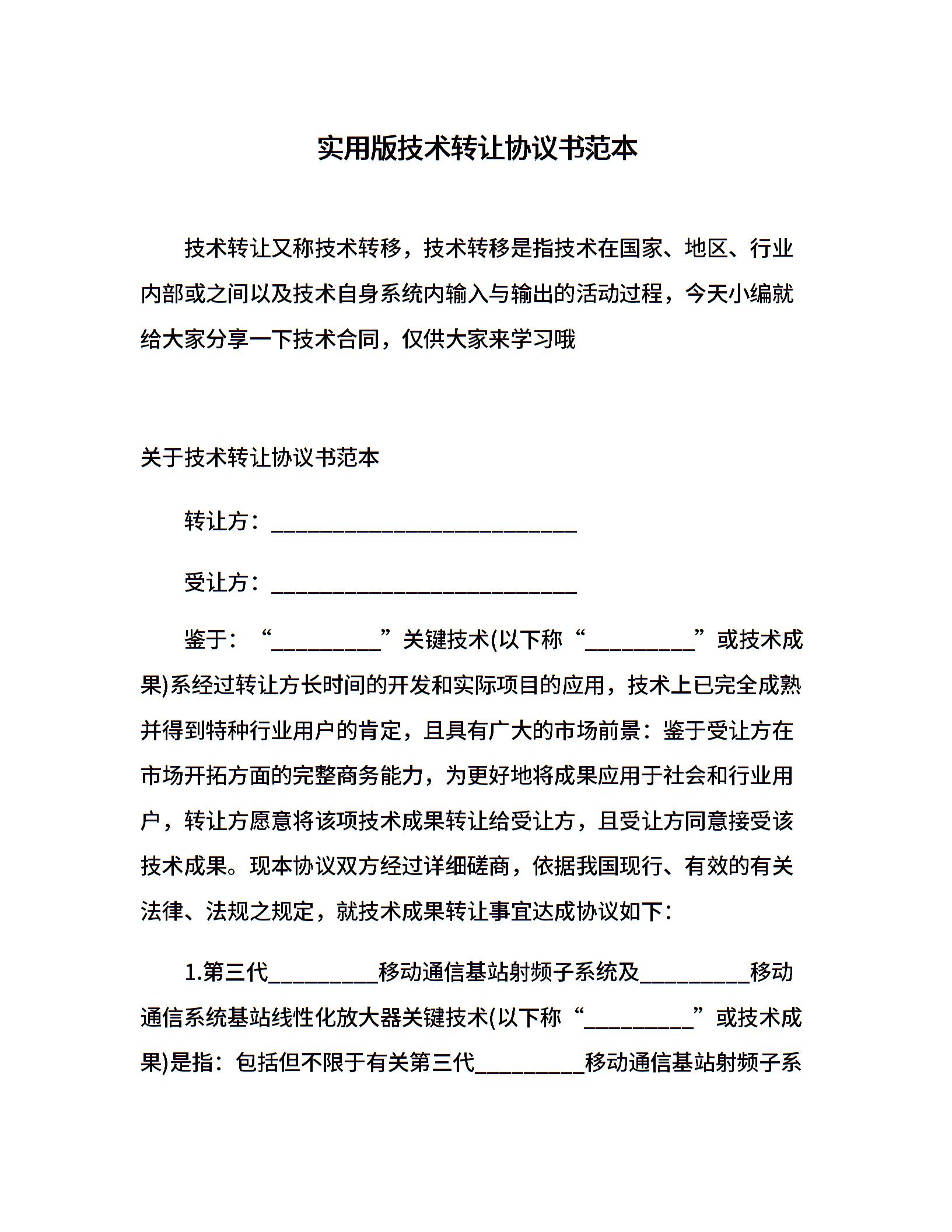 实用版技术转让协议书范本