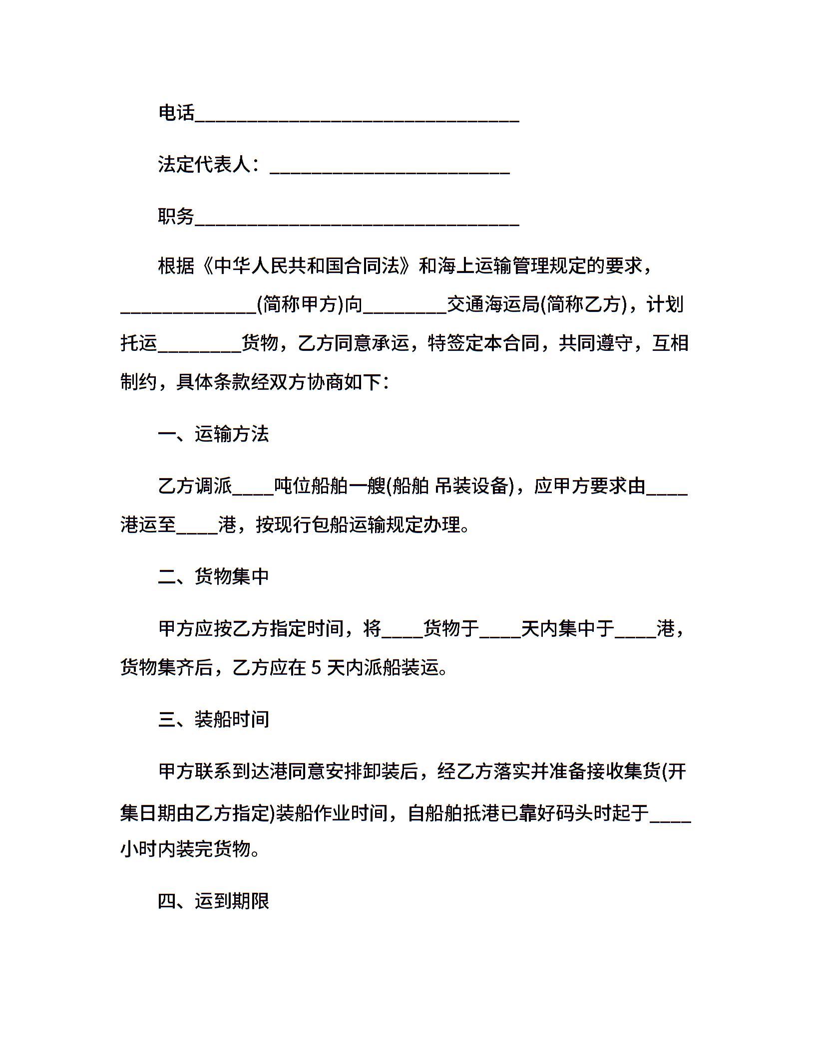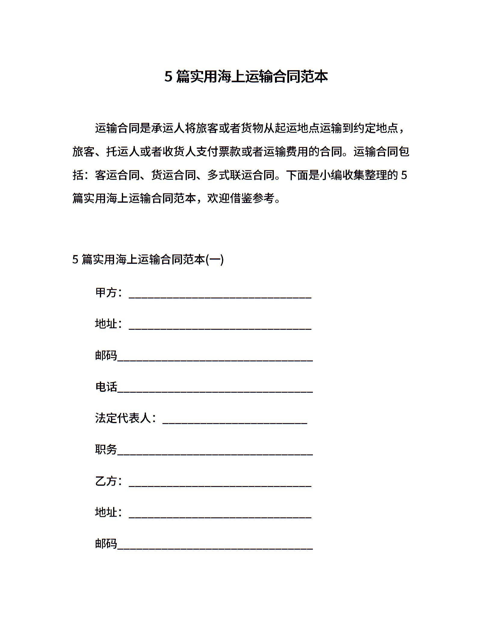 5篇实用海上运输合同范本