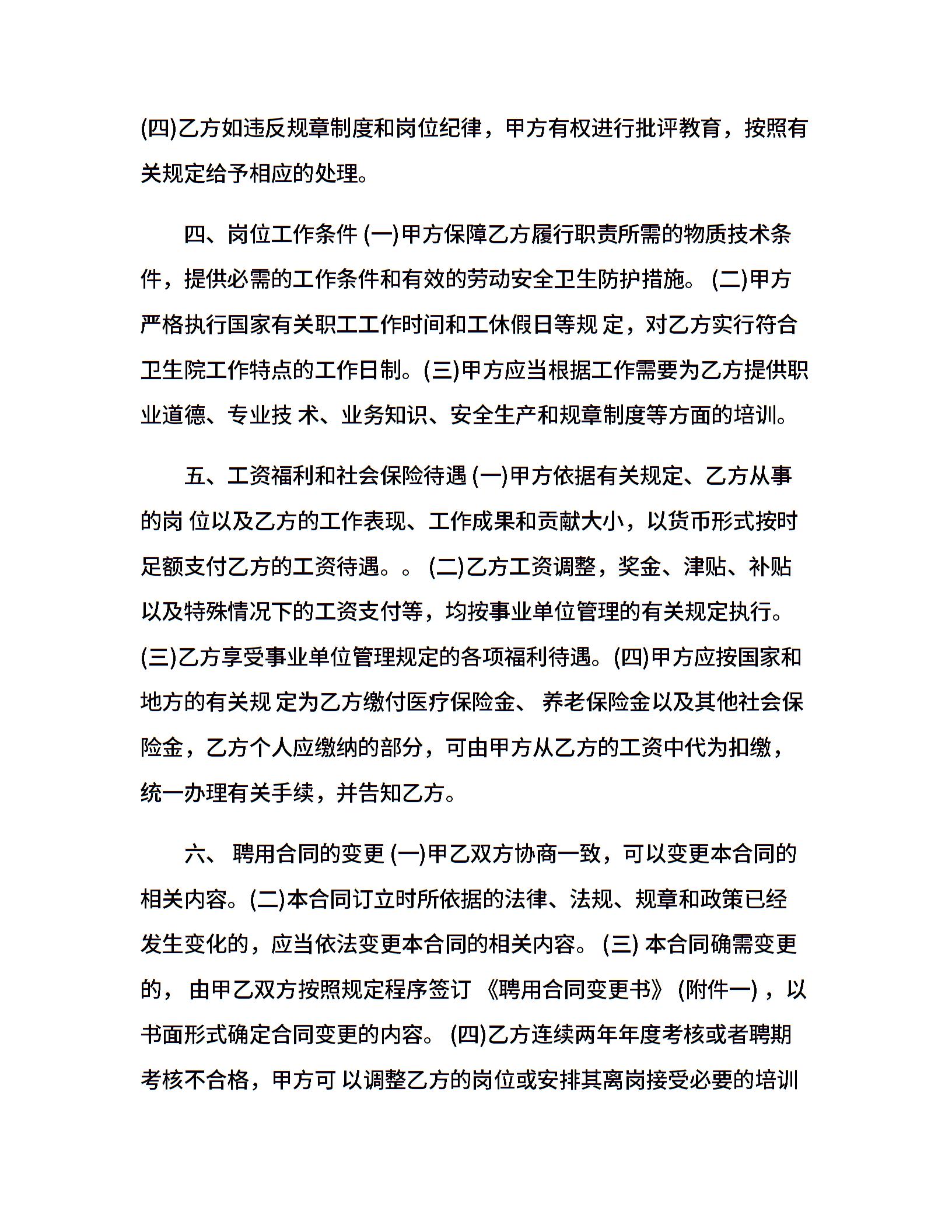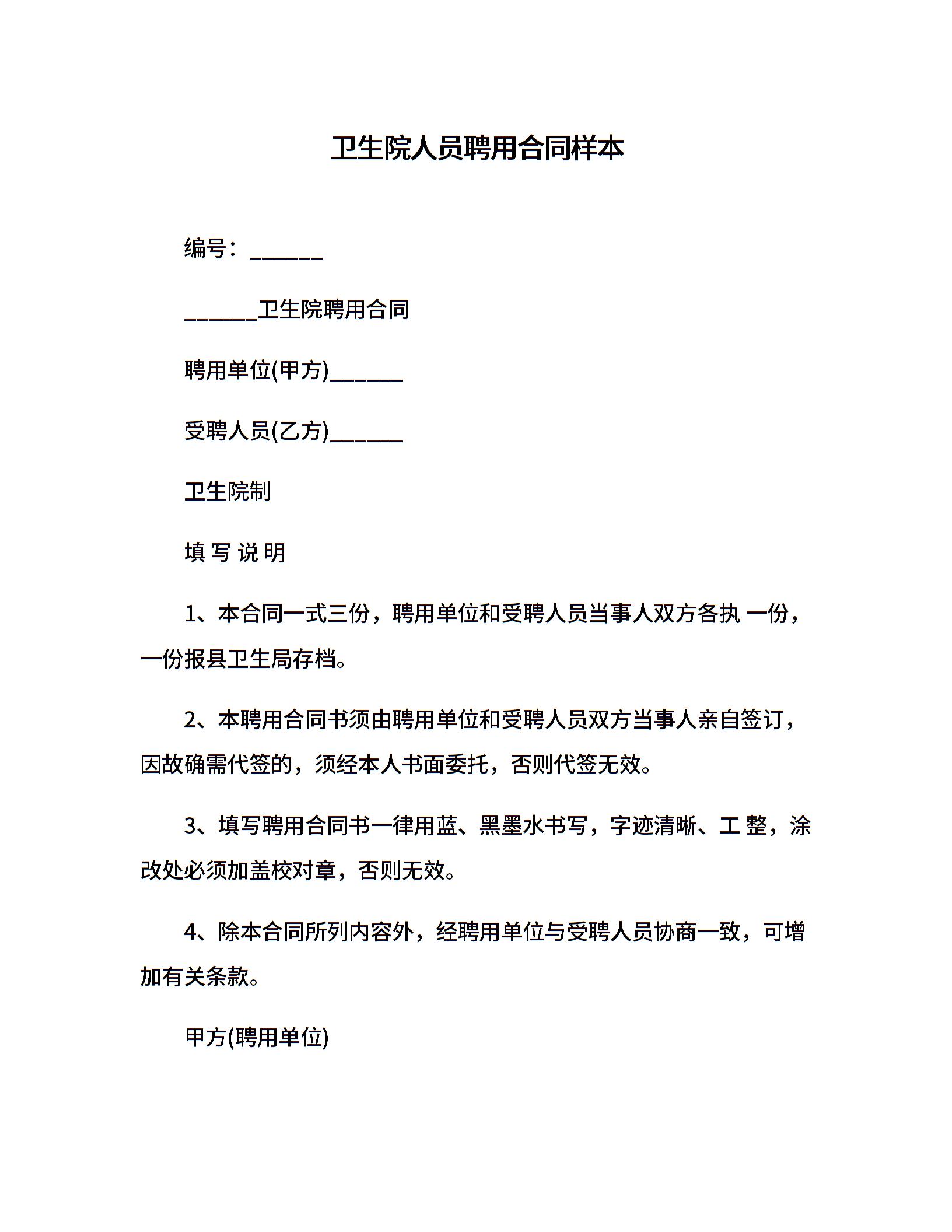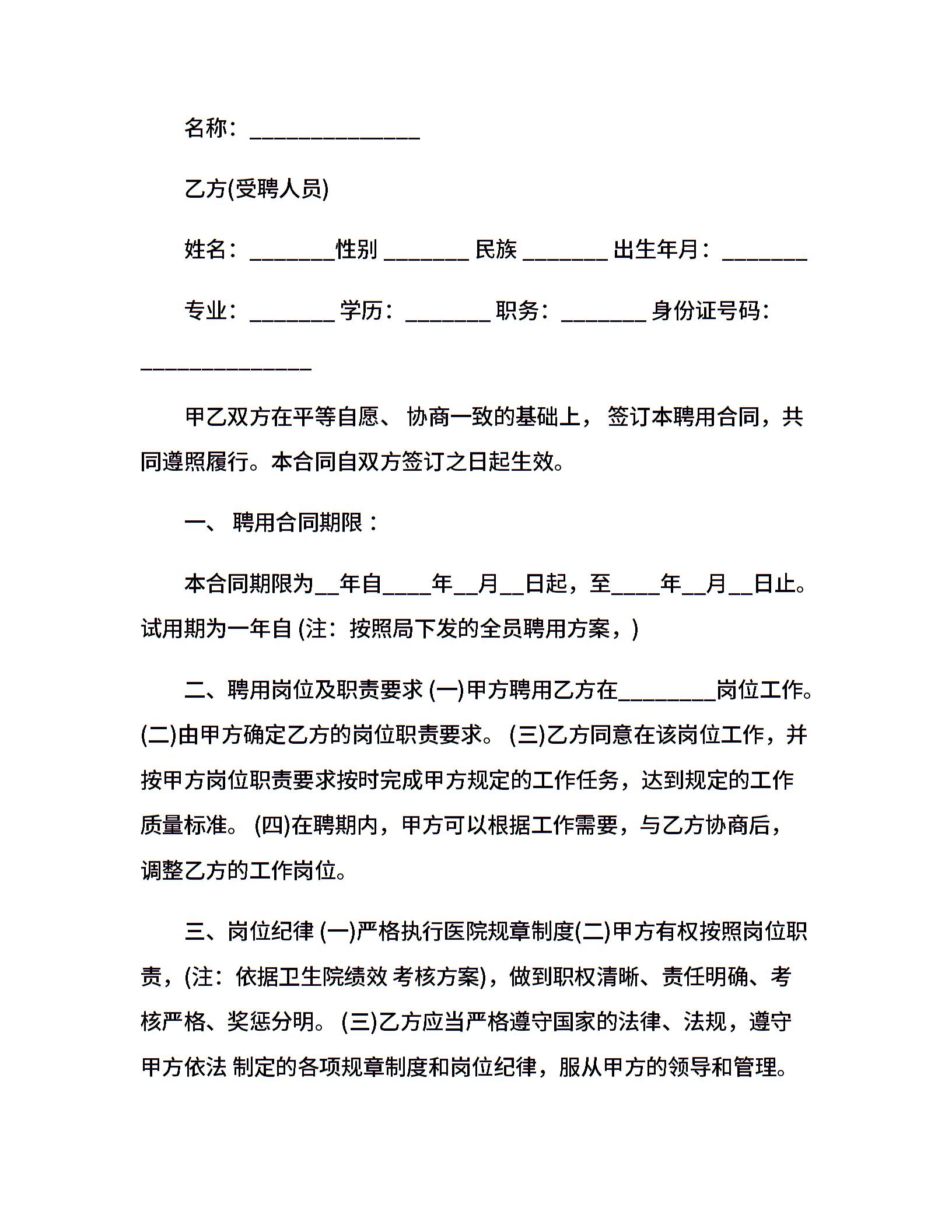 卫生院人员聘用合同样本