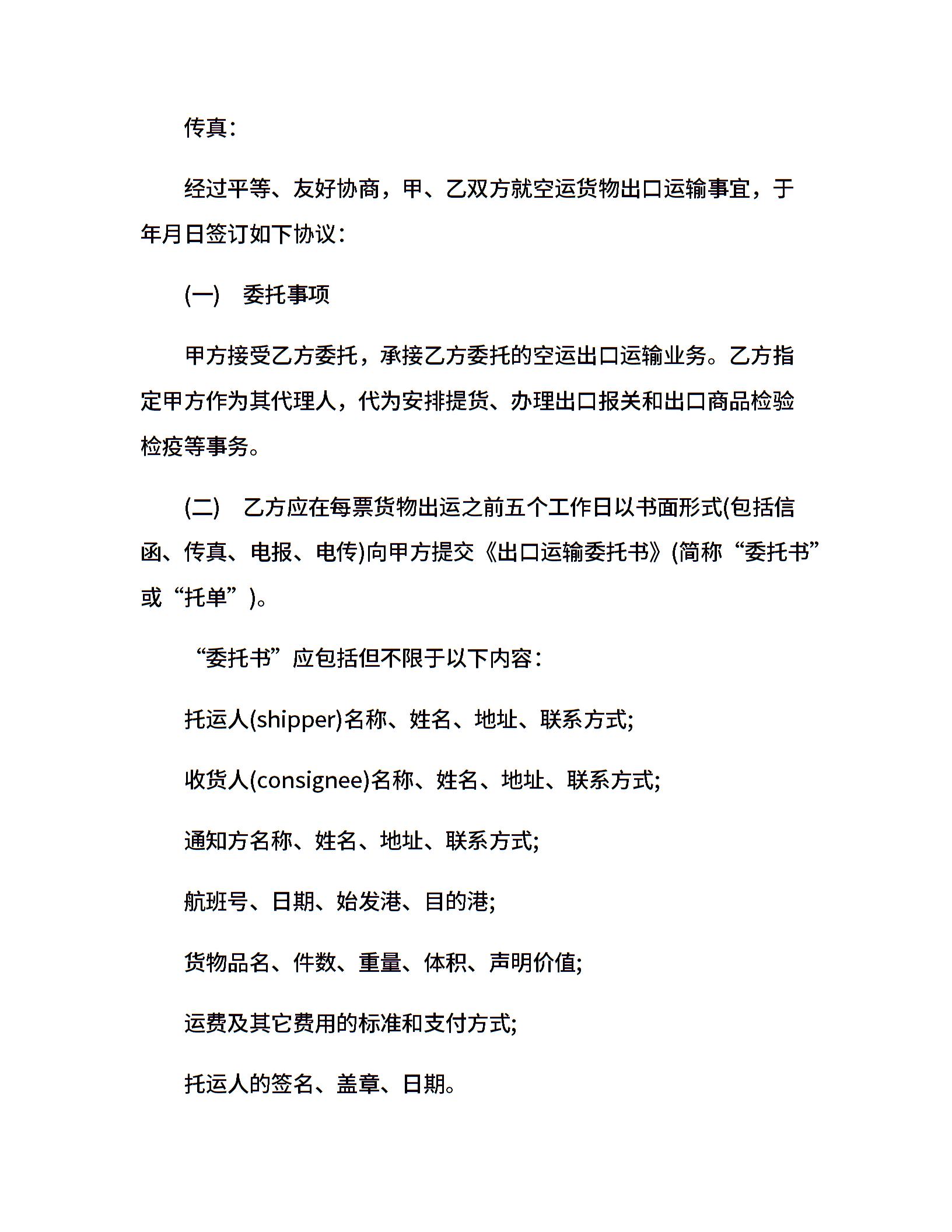 出口运输合同范本5篇
