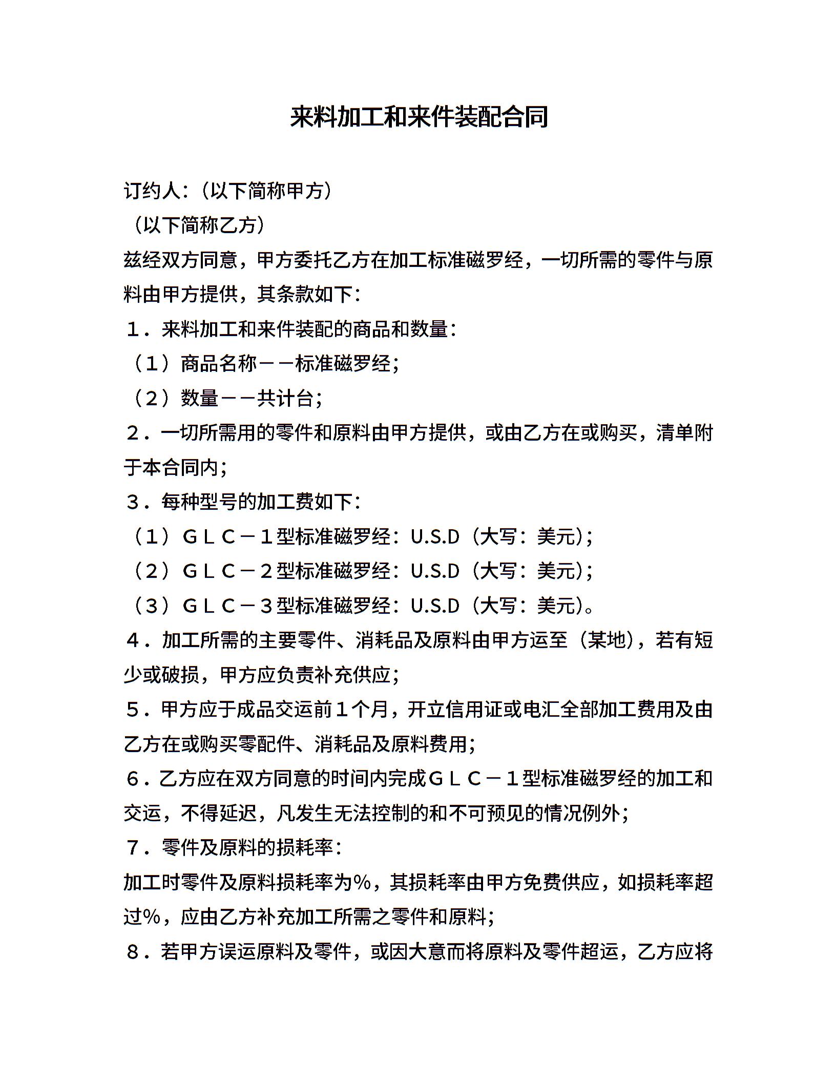 当前位置:量子办公 > 合同模板 > 加工合同 >