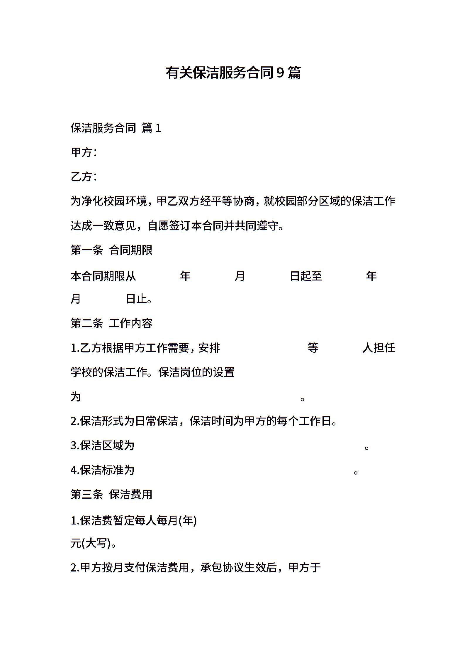 有关保洁服务合同9篇