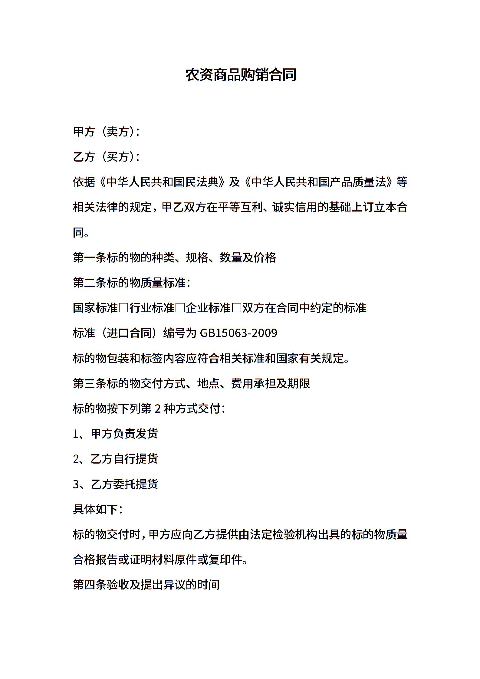农资商品购销合同