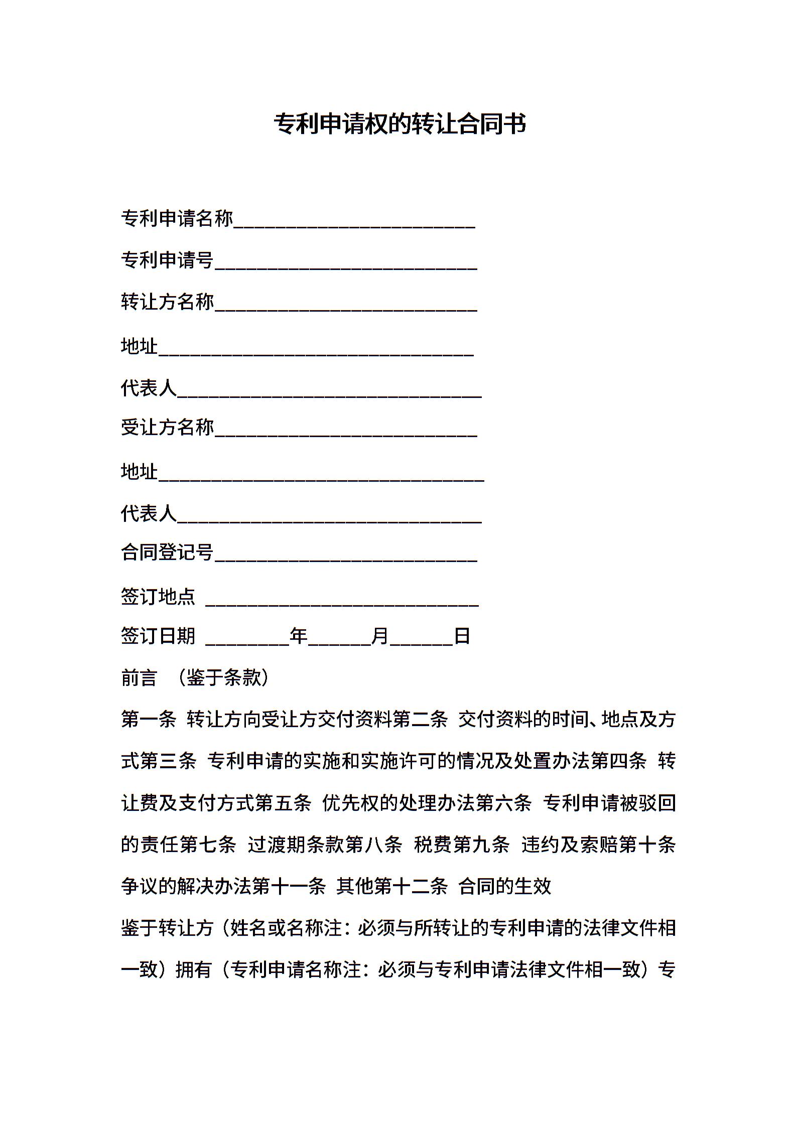 专利申请权的转让合同书