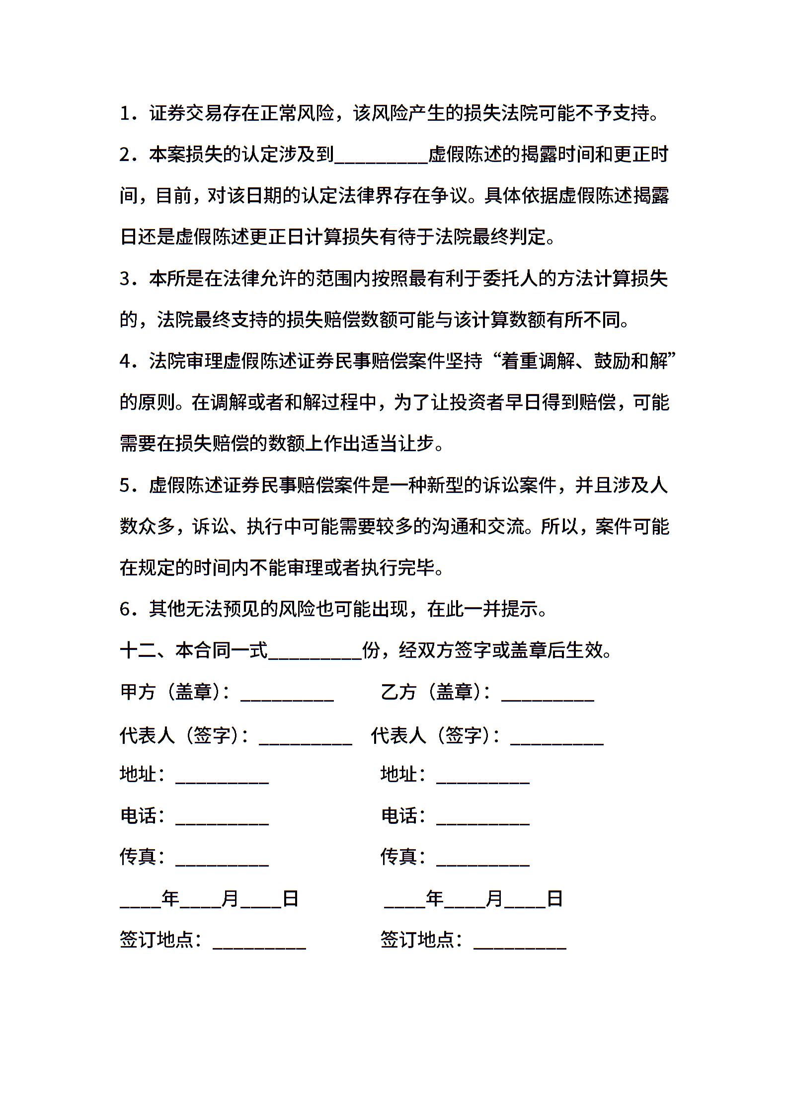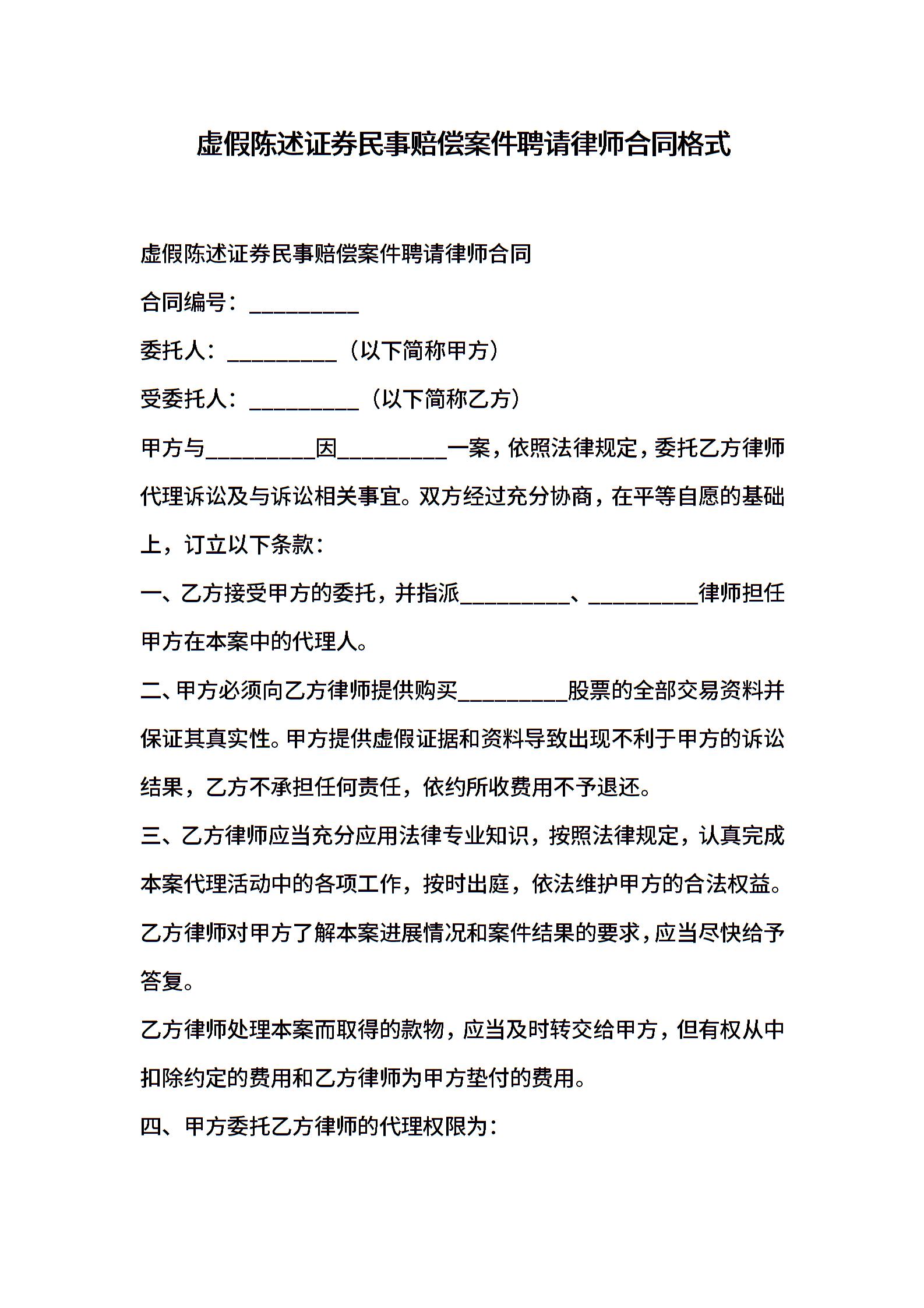 虚假陈述证券民事赔偿案件聘请律师合同格式