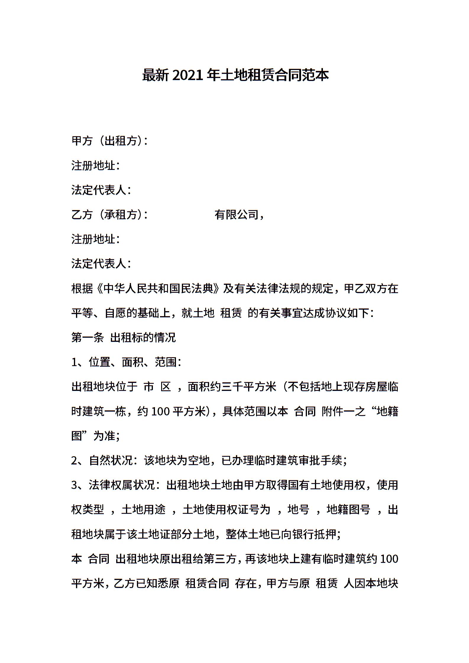 最新年土地租赁合同范本