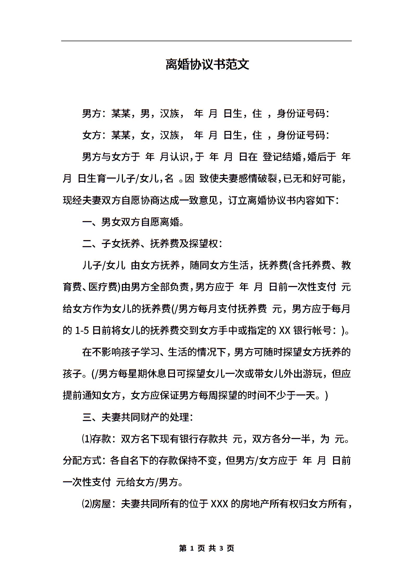 当前位置:量子办公 > 合同模板 > 离婚协议 >