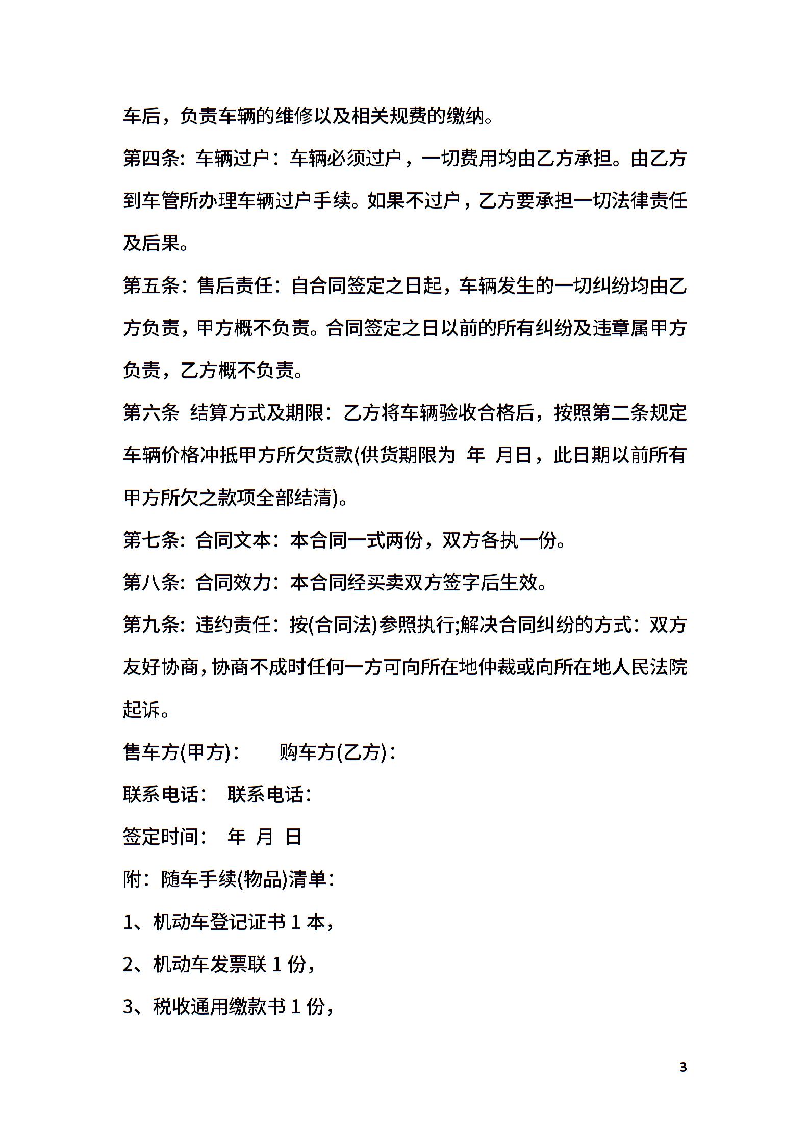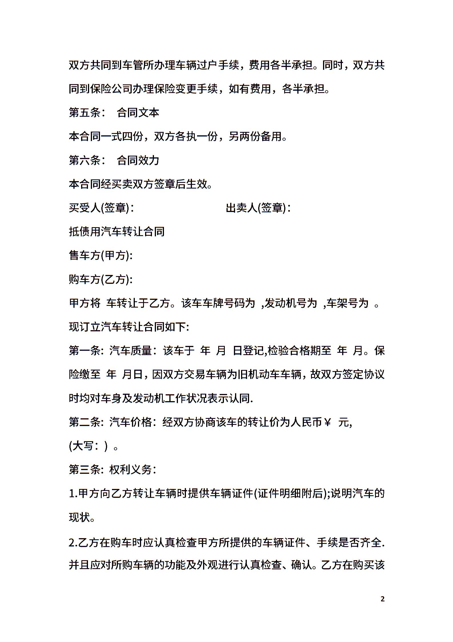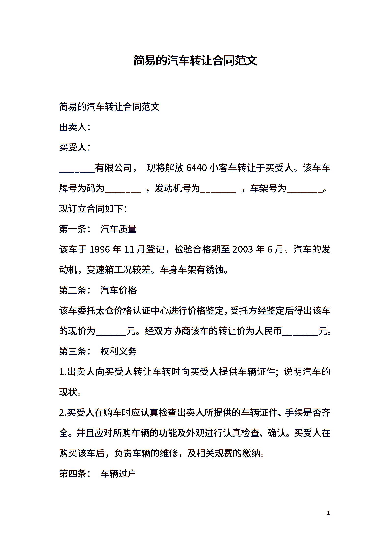 简易的汽车转让合同范文