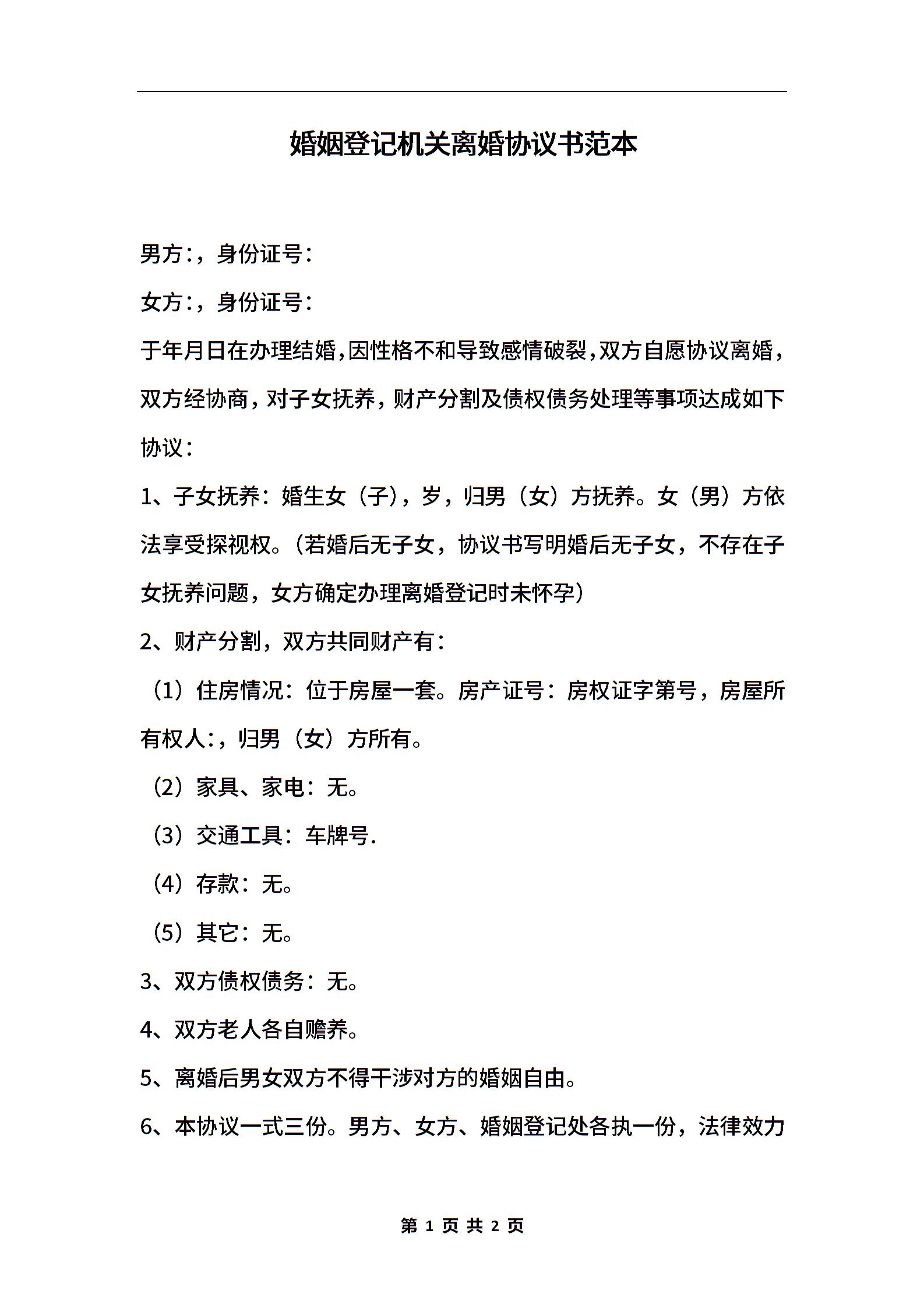 当前位置:量子办公 > 合同模板 > 离婚协议 >