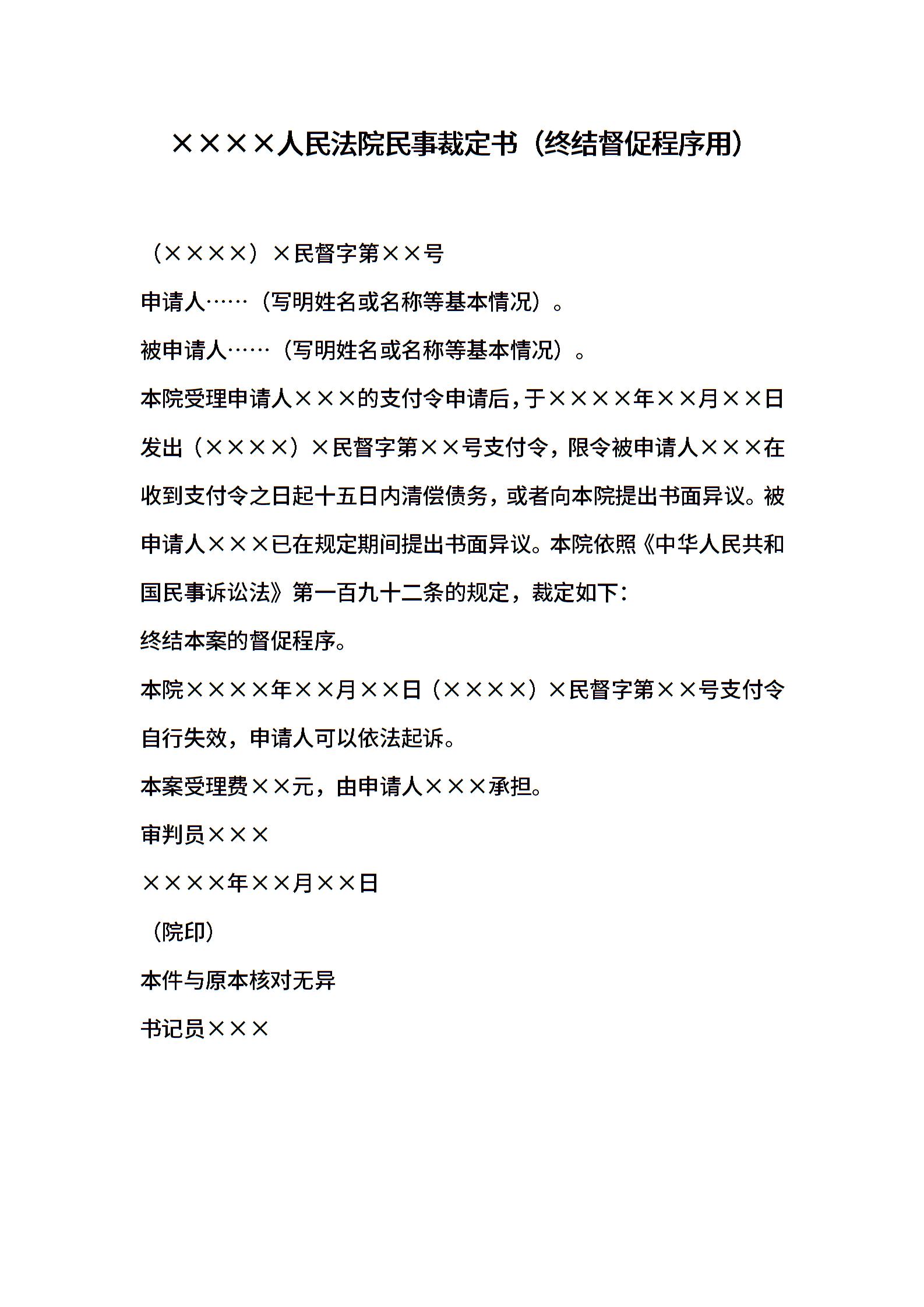 当前位置:量子办公 > 合同模板 > 裁定书 >