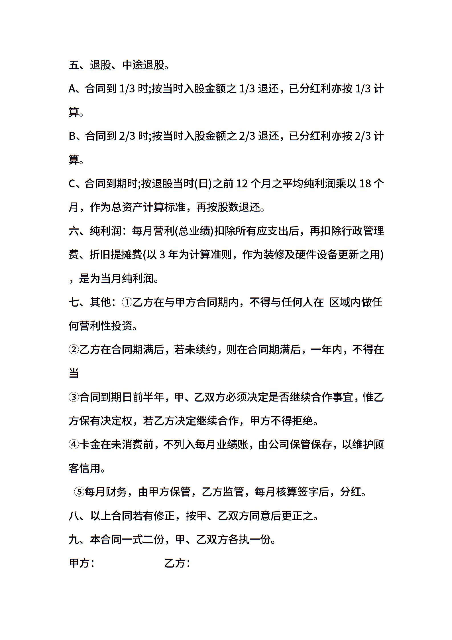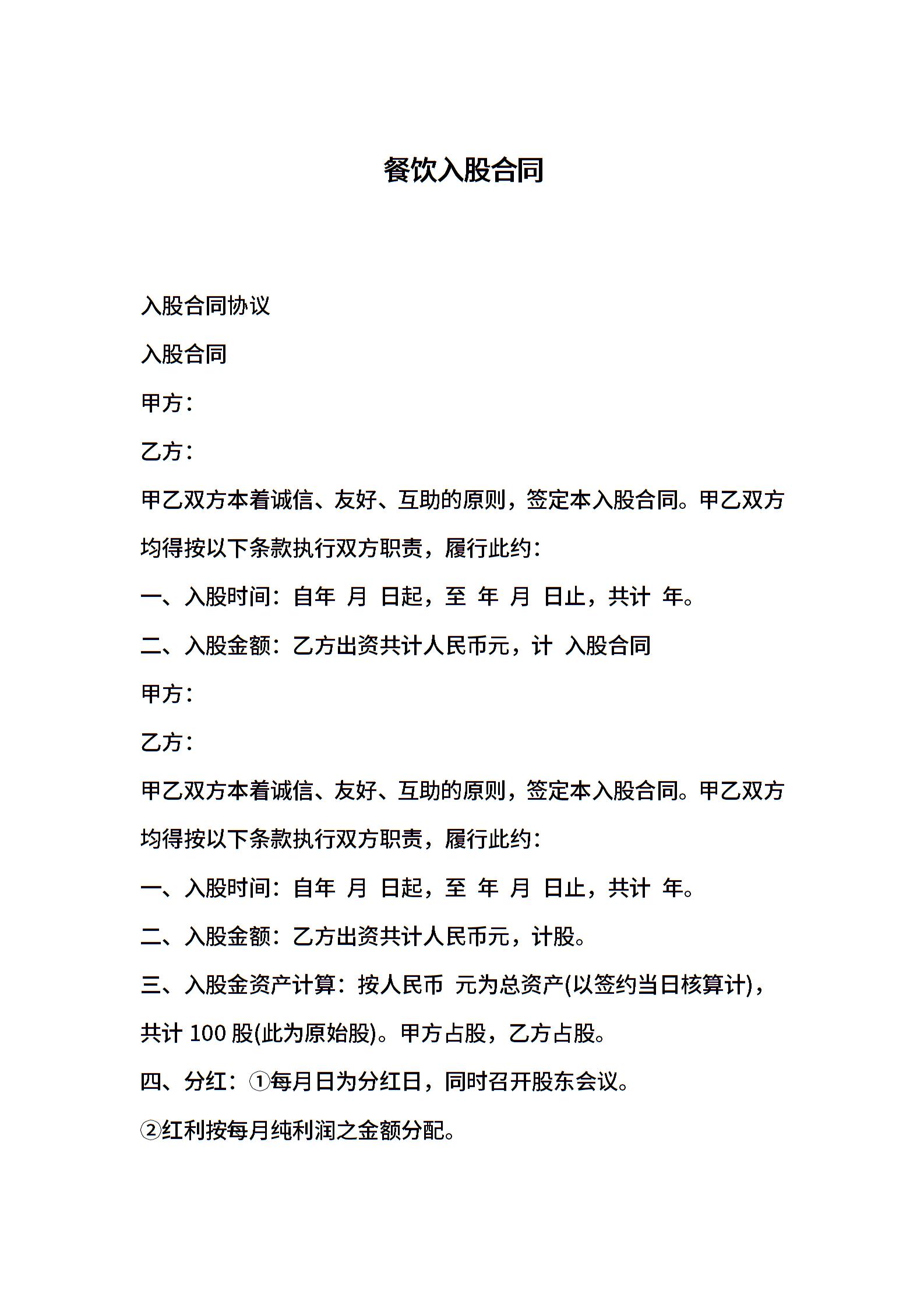 餐饮入股合同