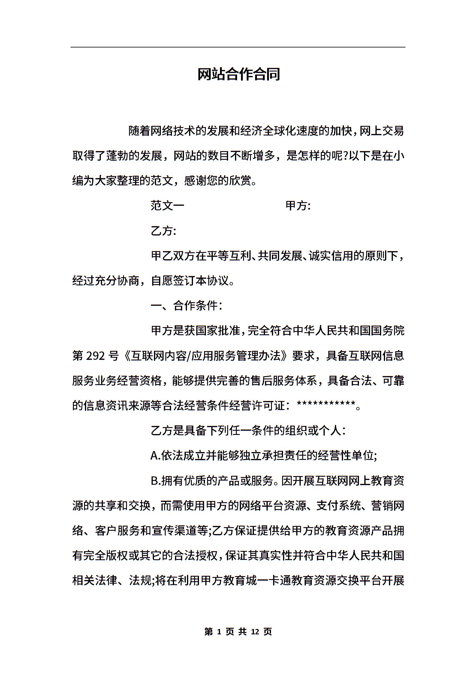 网站合作合同